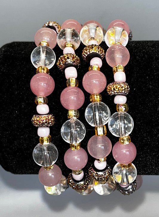 Pink Morganite and Clear Quartz Crystal Bracelet with Charms
