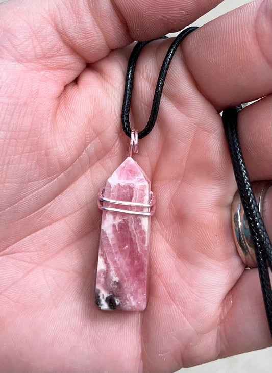 Rhodochrosite Mini Tower Pendant Necklace, Handmade!