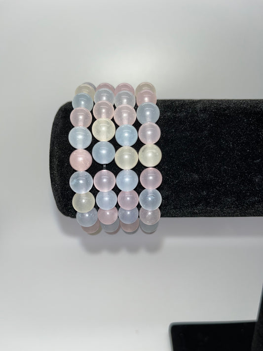 Pink Morganite and Clear Quartz Crystal Bracelet with Charms