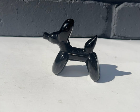 Black Obsidian Balloon Dog Carvings, Real Crystal