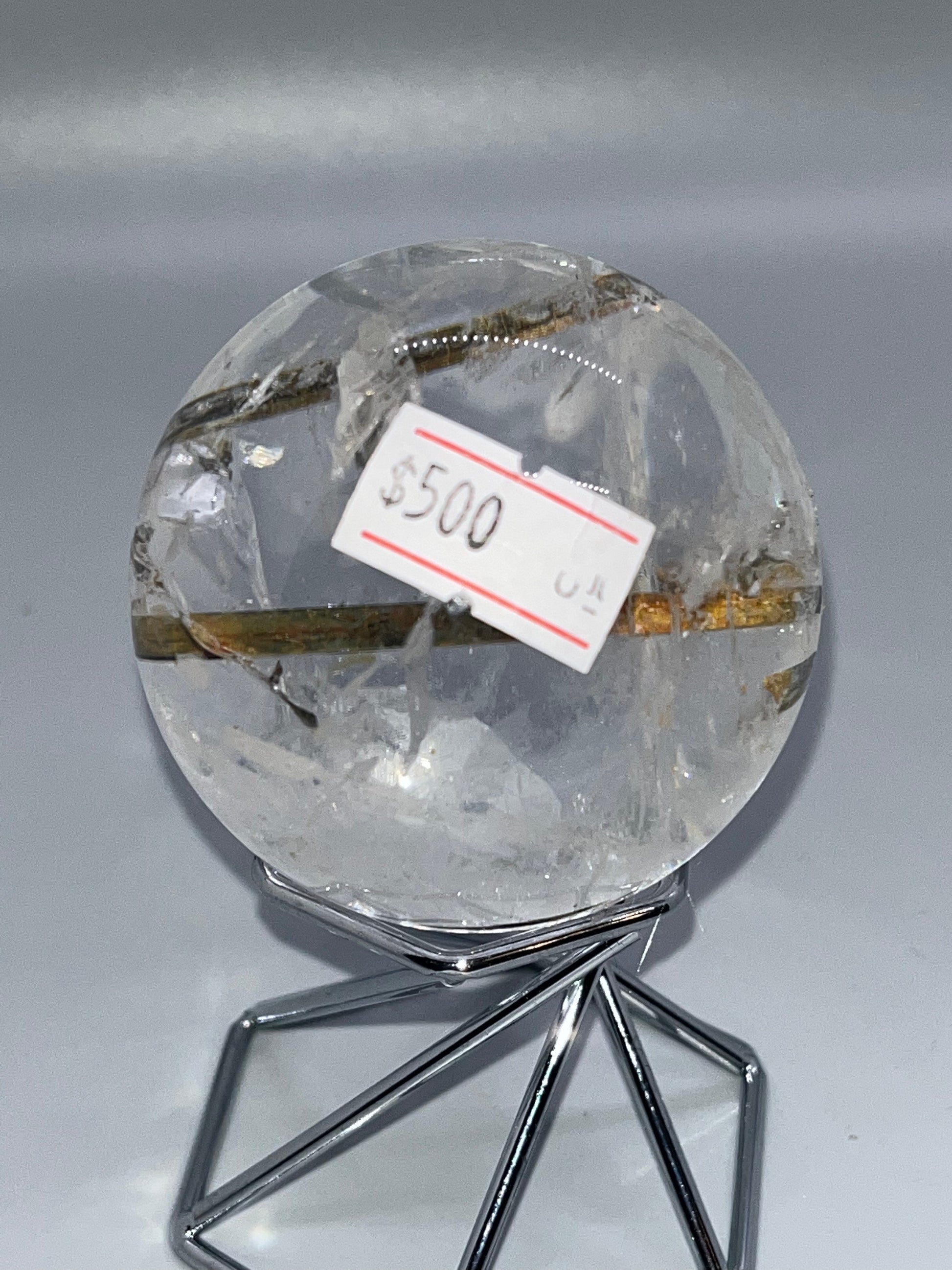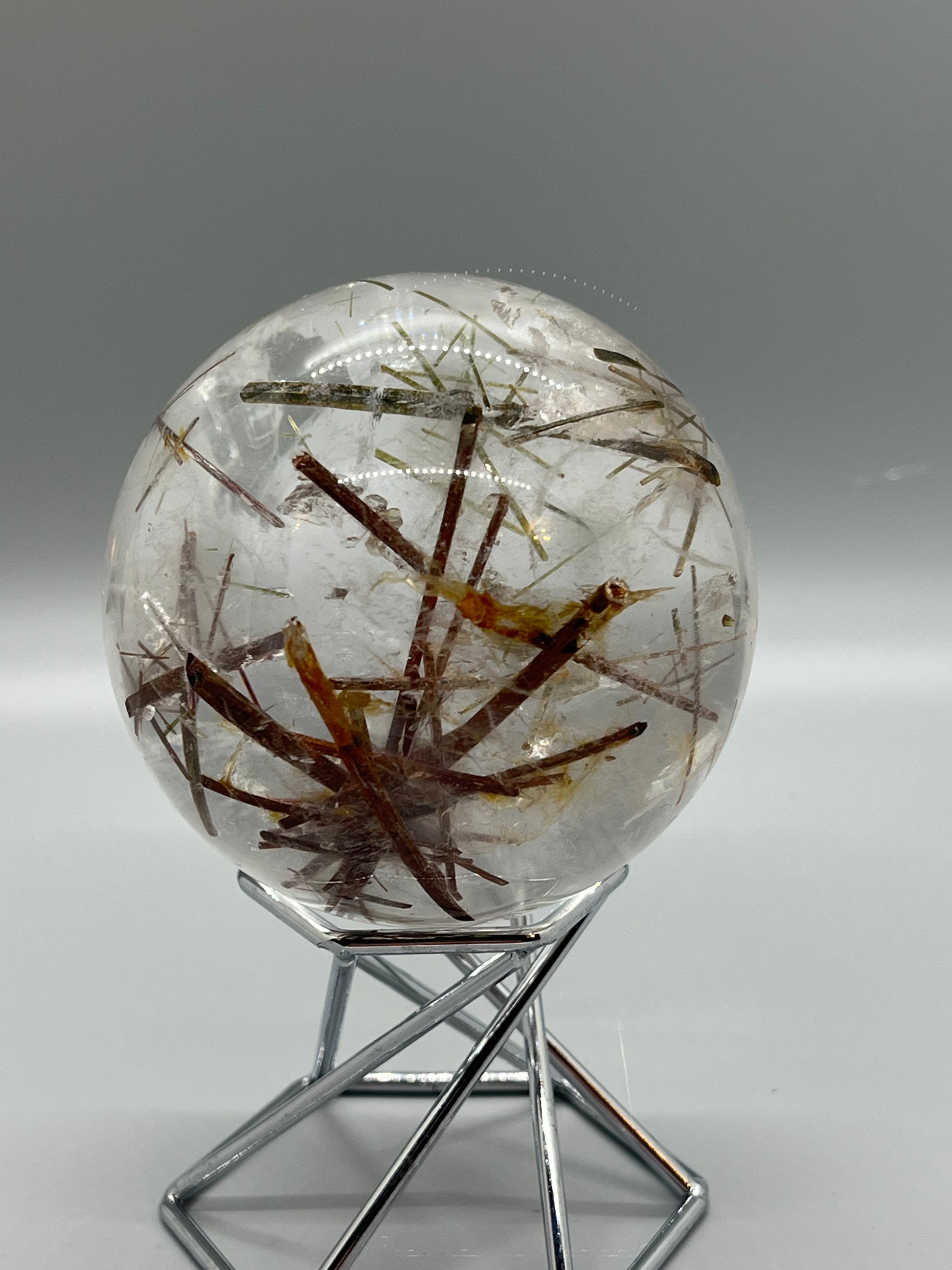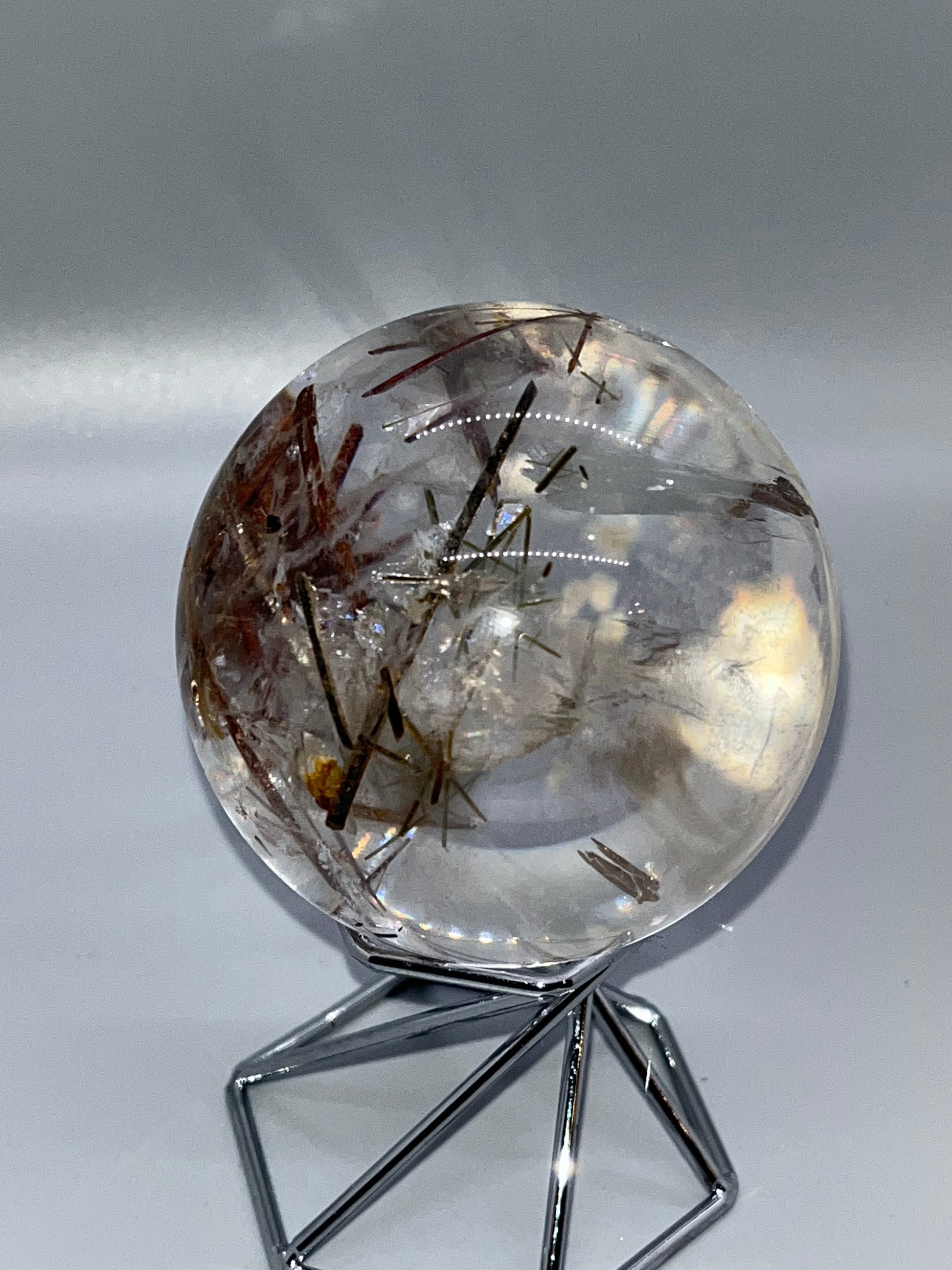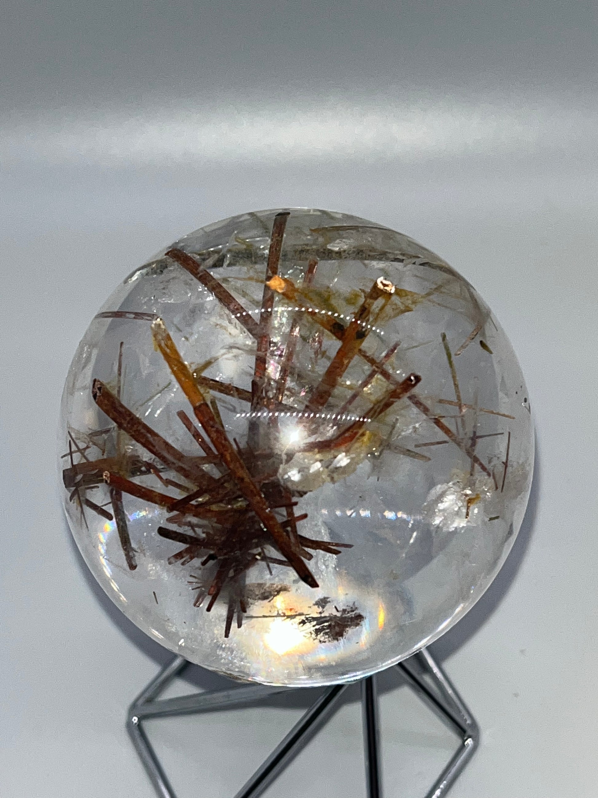 Rutilated Quartz: A stone with a high vibration that attunes one to their Divine Purpose. Like Clear Quartz, it is very programmable and can be used to magnify the energy of any intention. It accelerates the manifestation process and enhances intuition, psychic opening, and consciousness expansion.