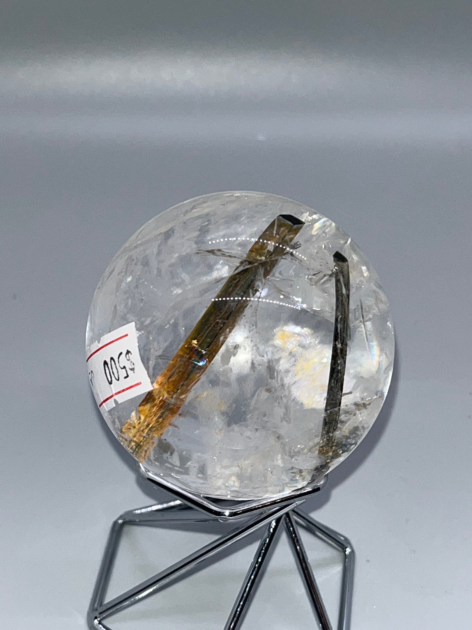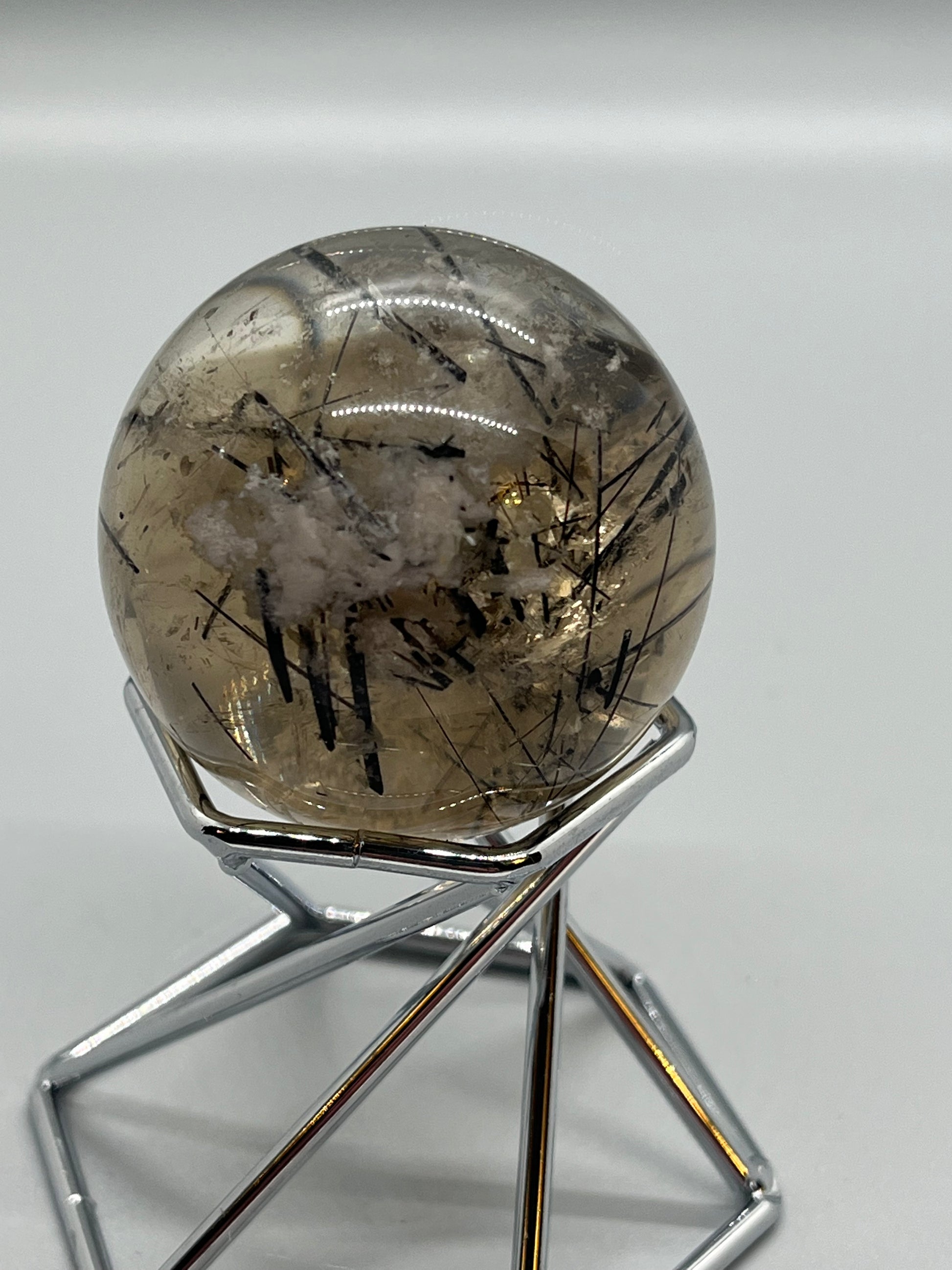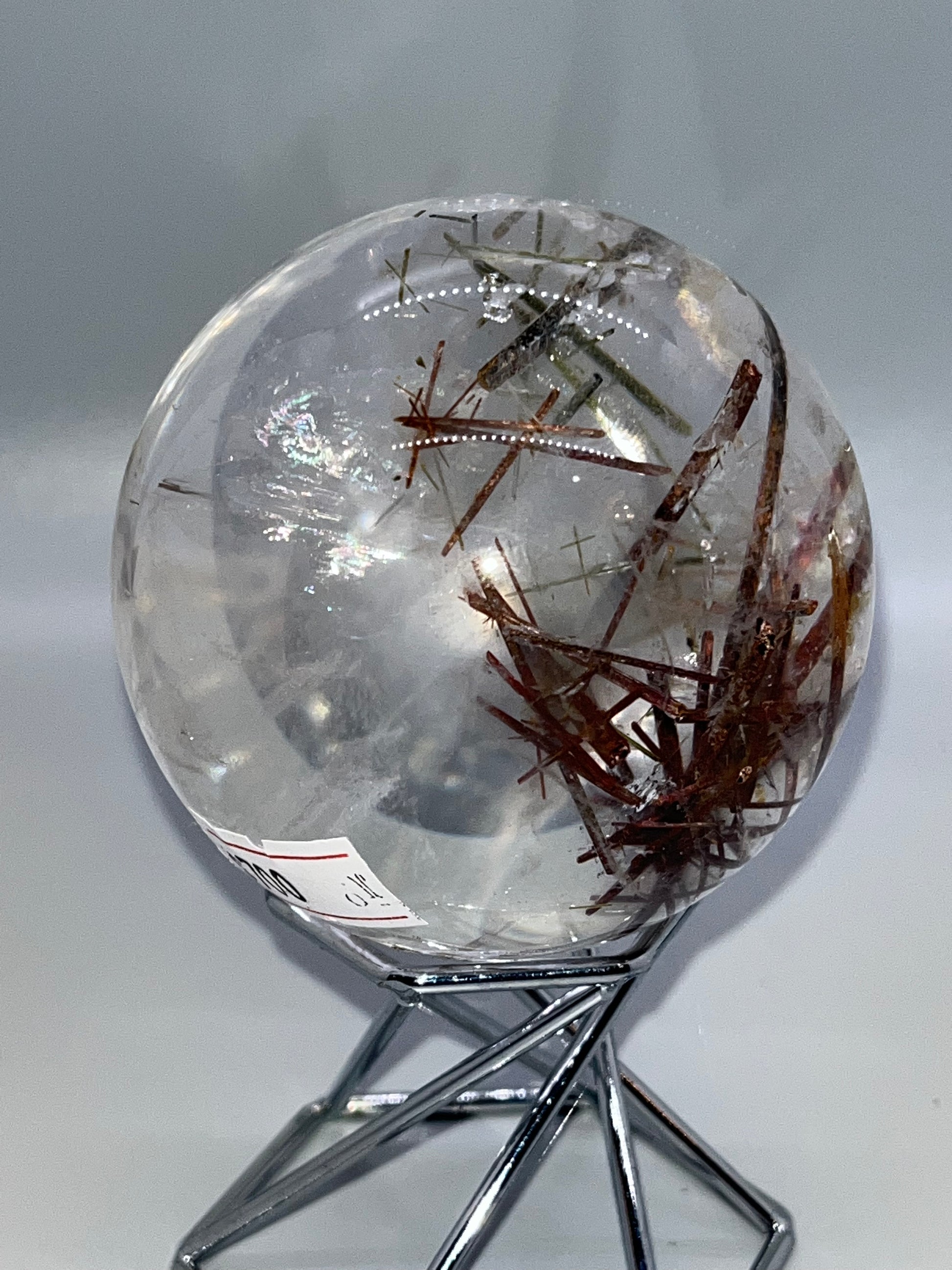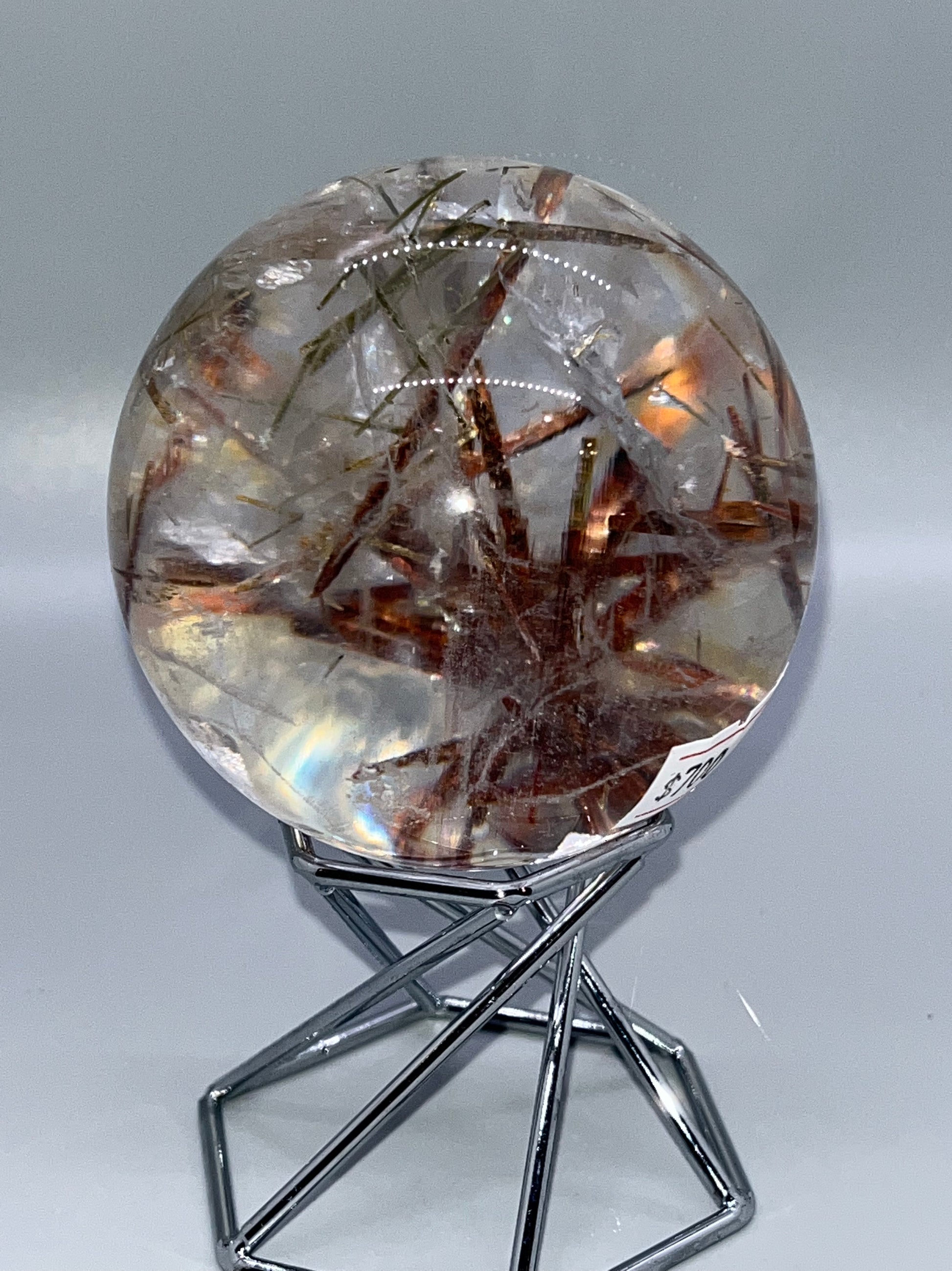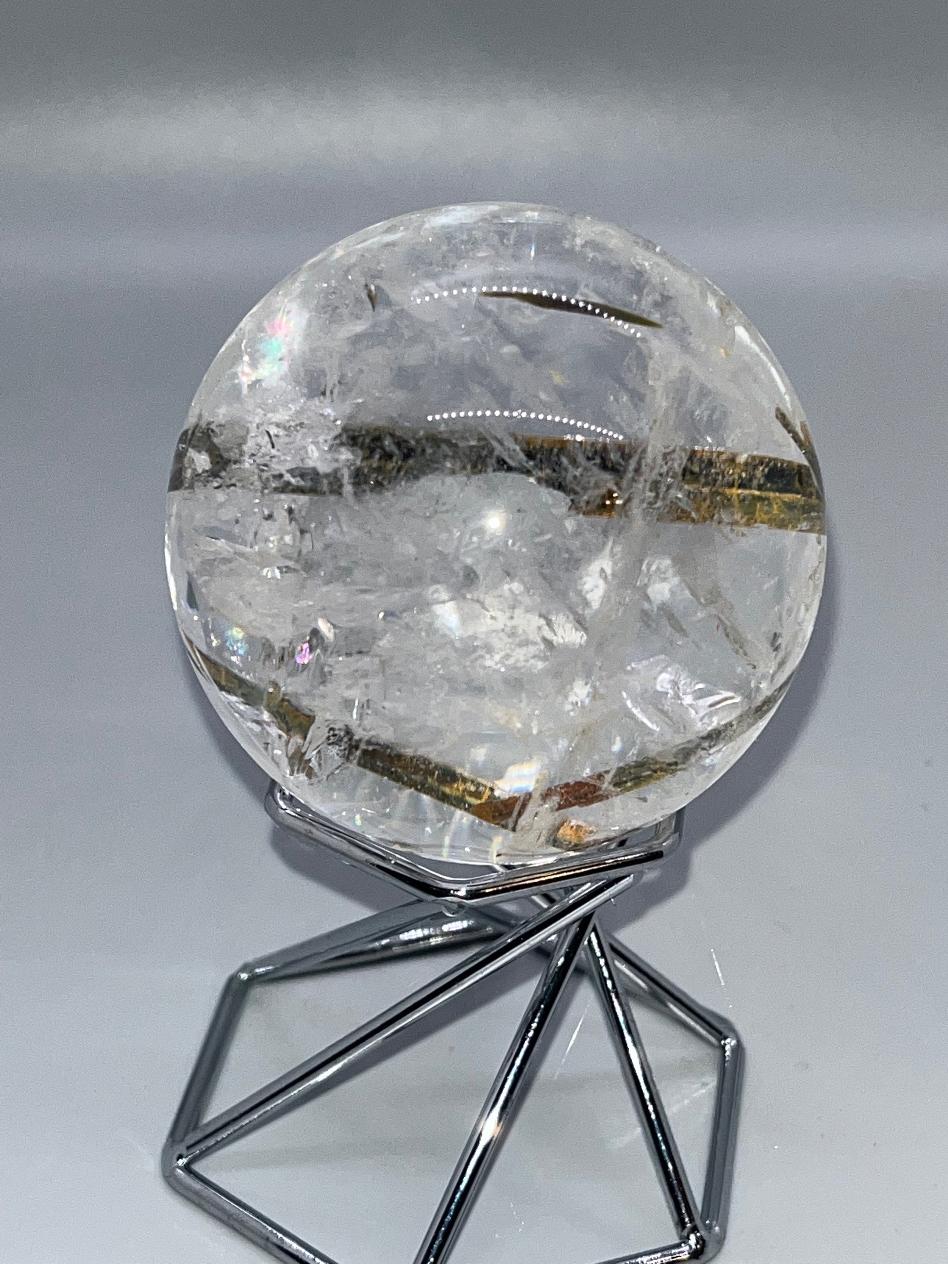 Rutilated Quartz: A stone with a high vibration that attunes one to their Divine Purpose. Like Clear Quartz, it is very programmable and can be used to magnify the energy of any intention. It accelerates the manifestation process and enhances intuition, psychic opening, and consciousness expansion.