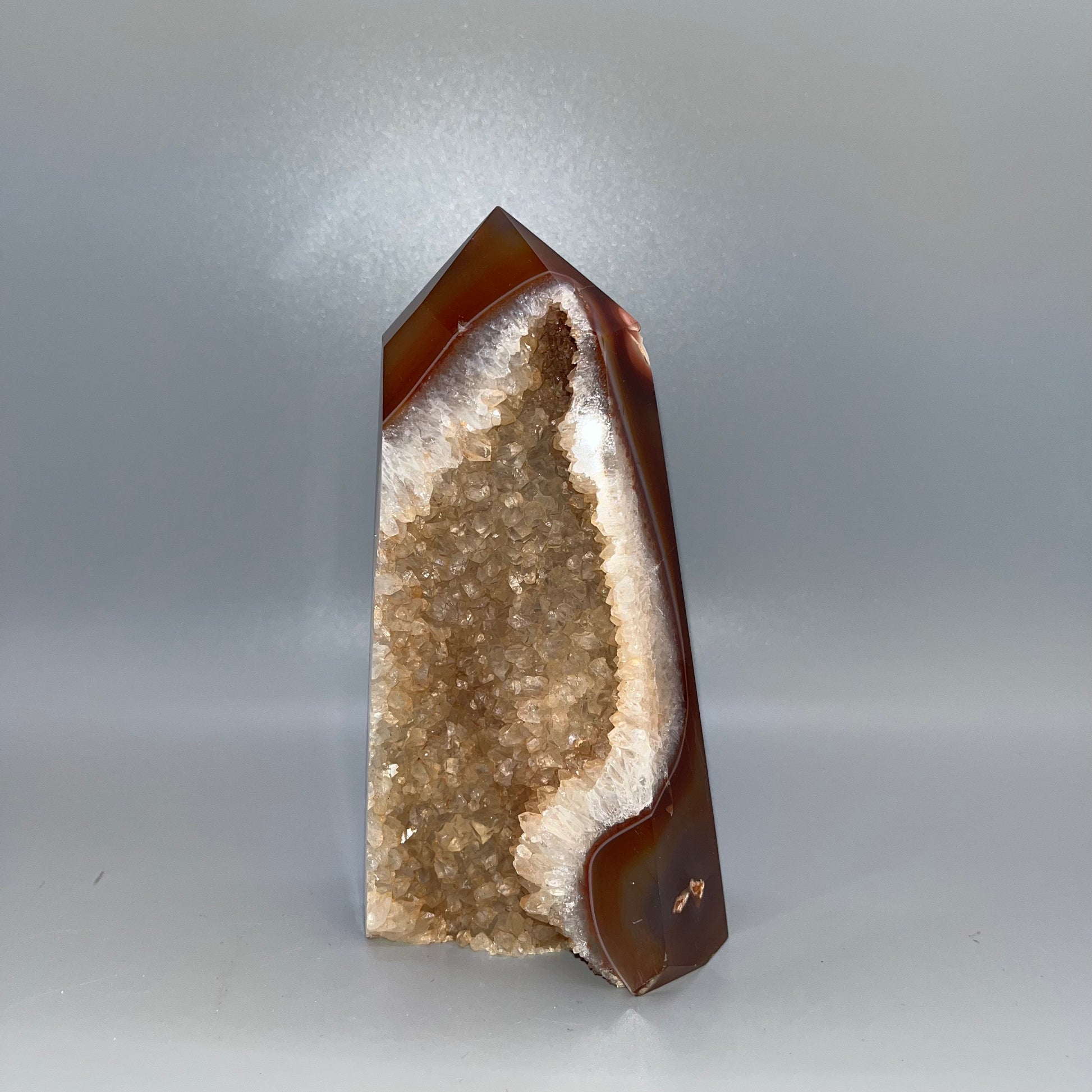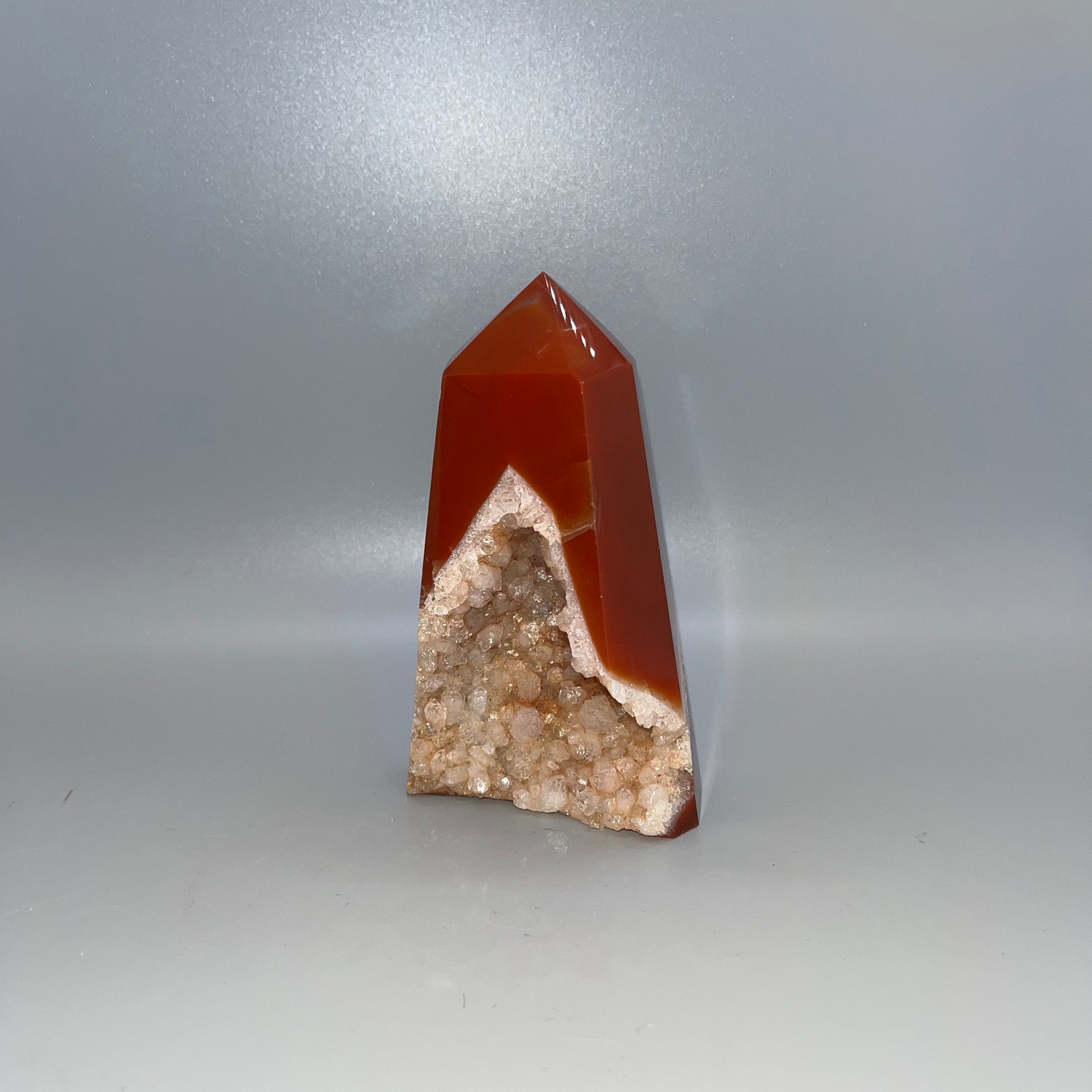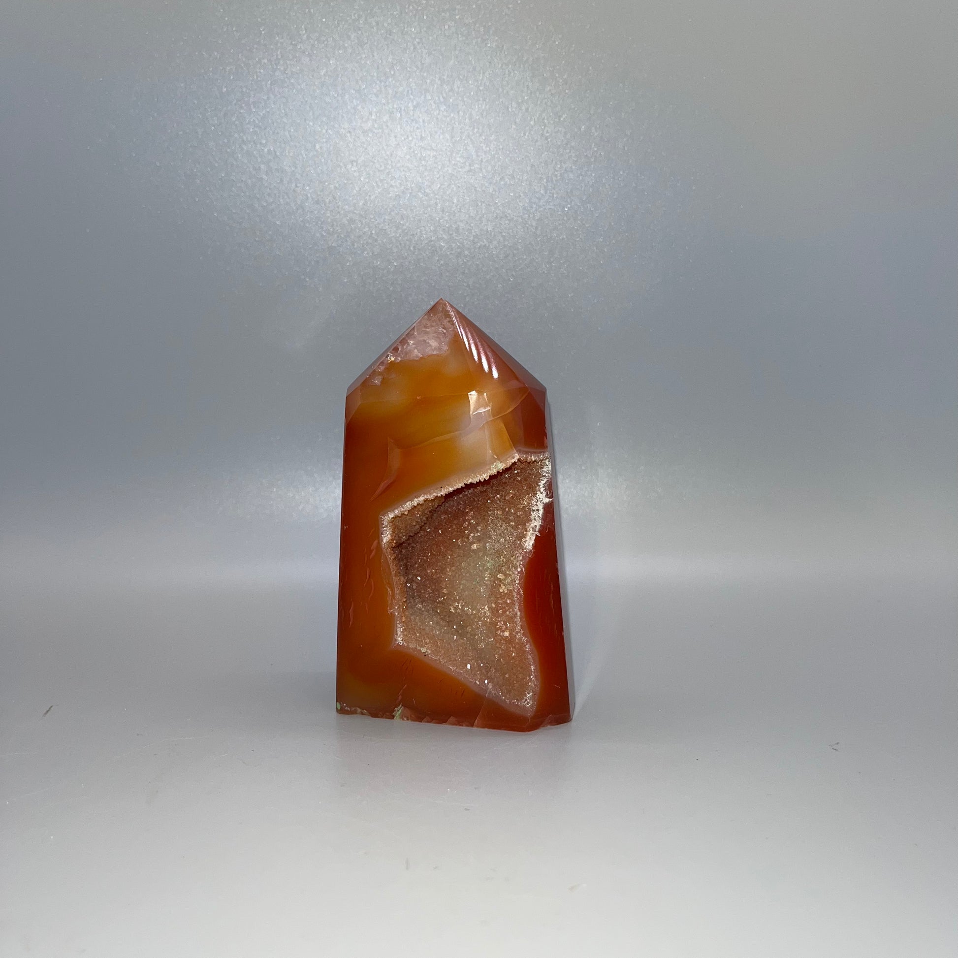 These Carnelian Druzy Towers are the perfect addition to any home. The naturally occurring druzy crystal clusters offer an elegant and sophisticated look, with beautiful shades of orange and red that will make a statement in any room. The carnelian druzy towers are also easy to care for and maintain.