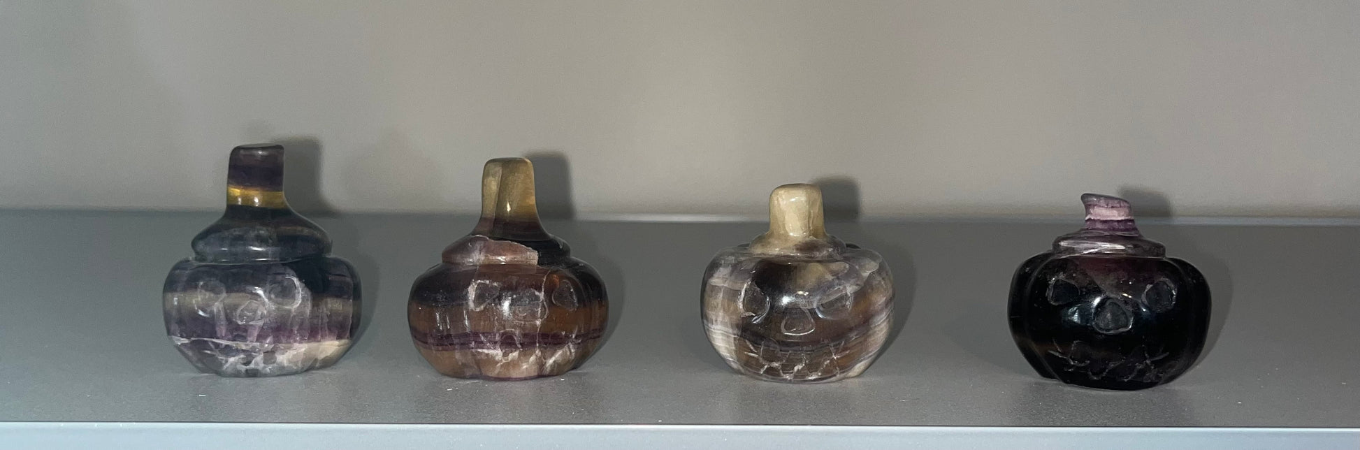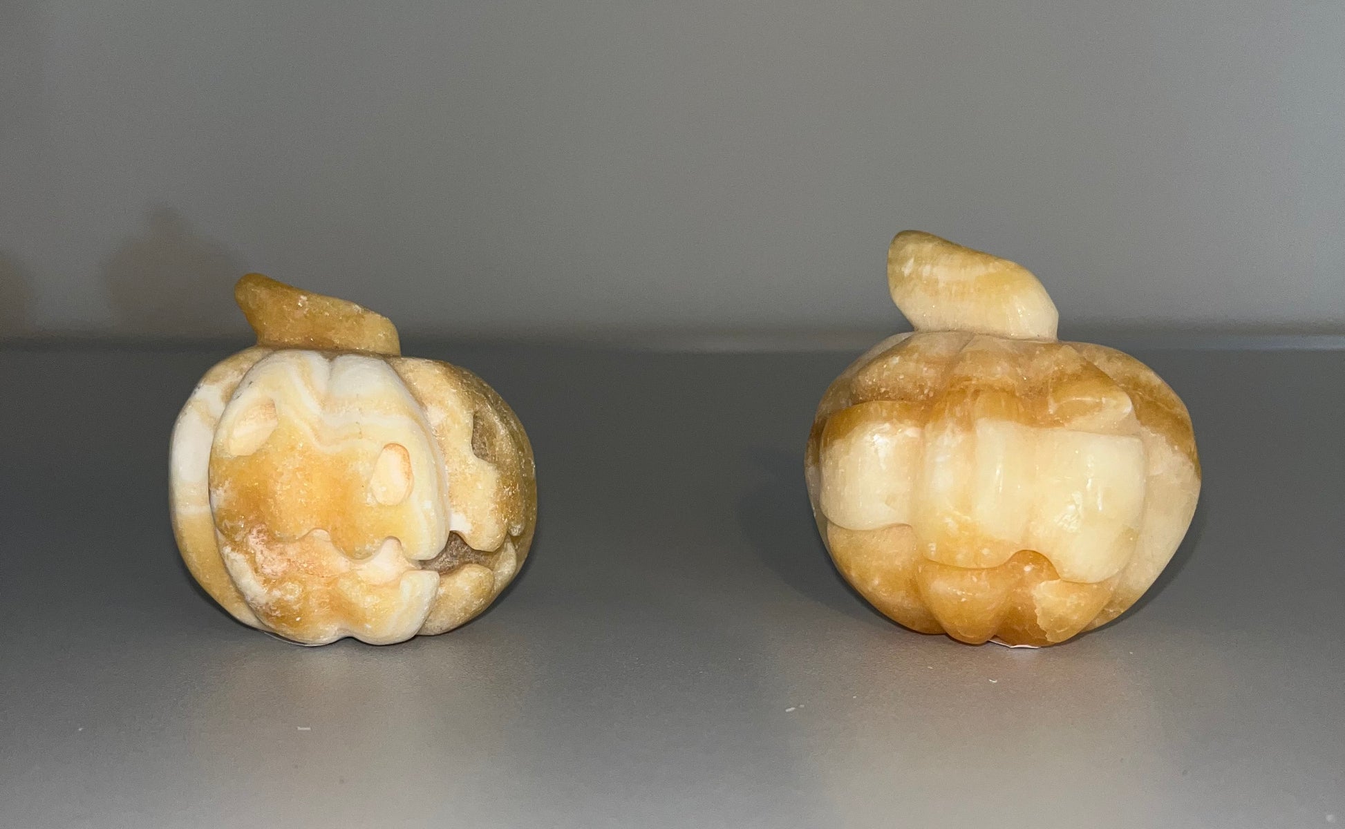 A variety of hand Carved Pumpkins. Exquisitely detailed. Approximately 2 inches.