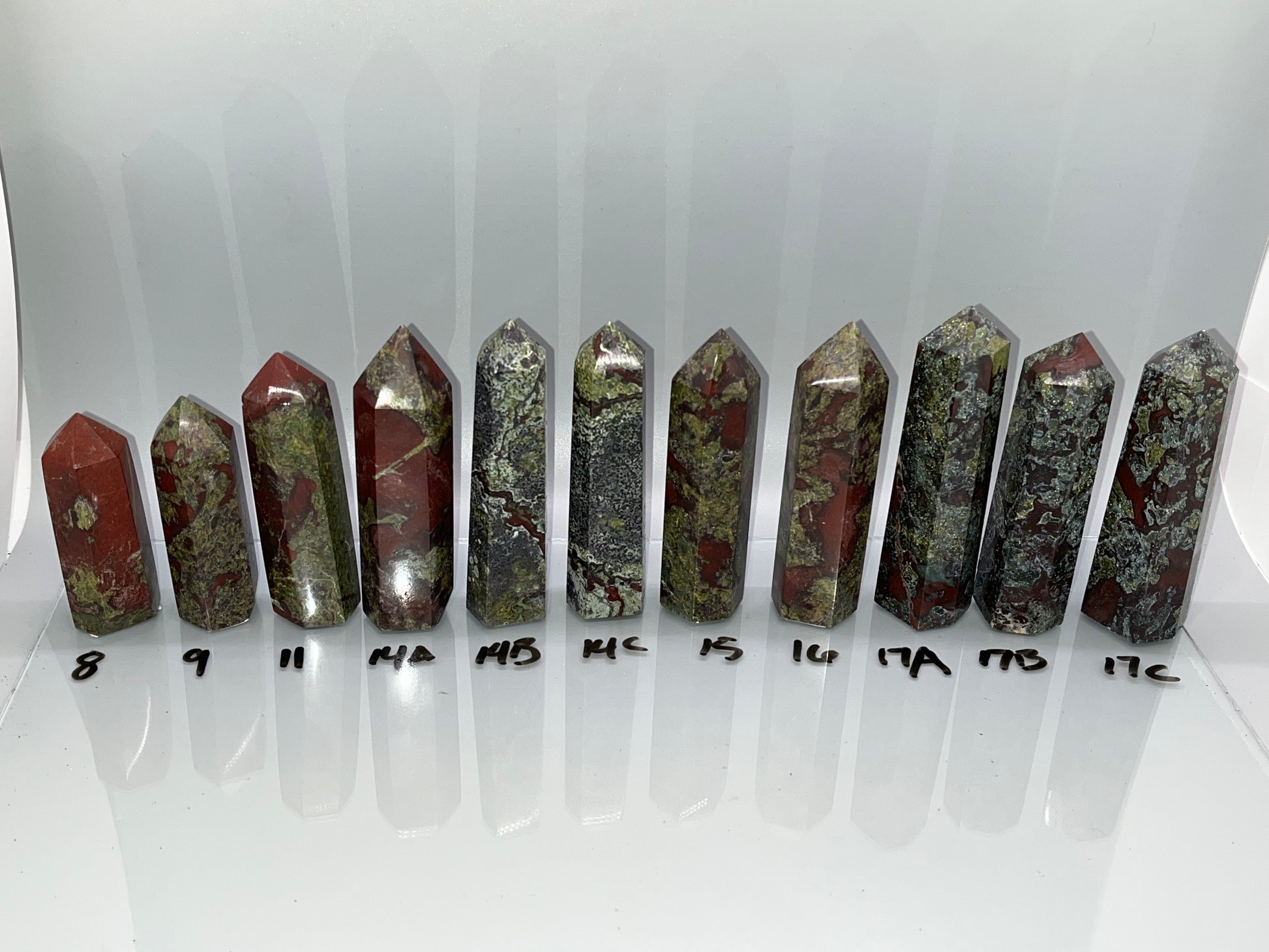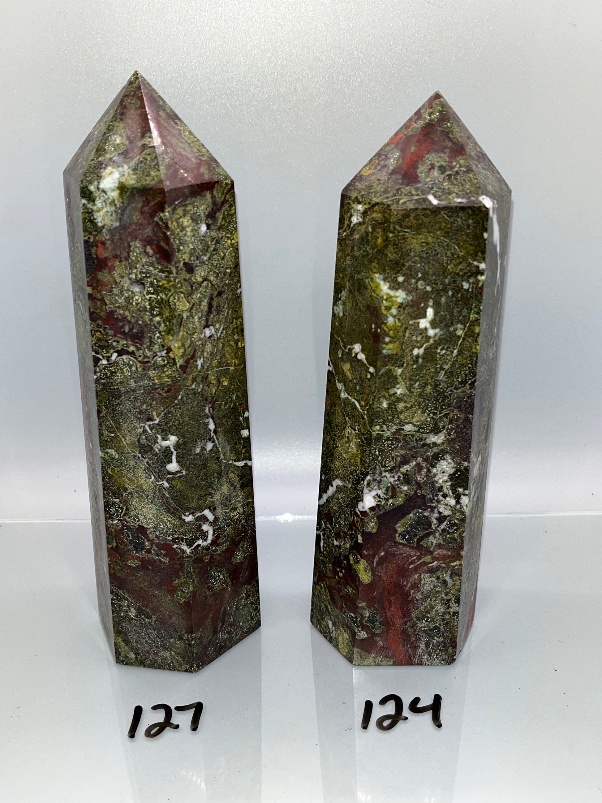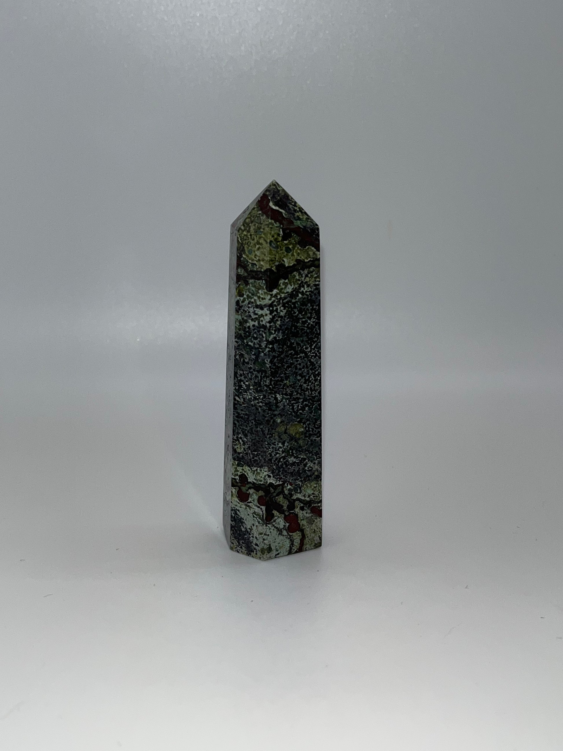Harness the ancient mystery and power of dragon's blood jasper with this crystal tower. Its deep red hues and unique patterning add beauty and mysticism to your home. Let its energy bring you strength and courage.
