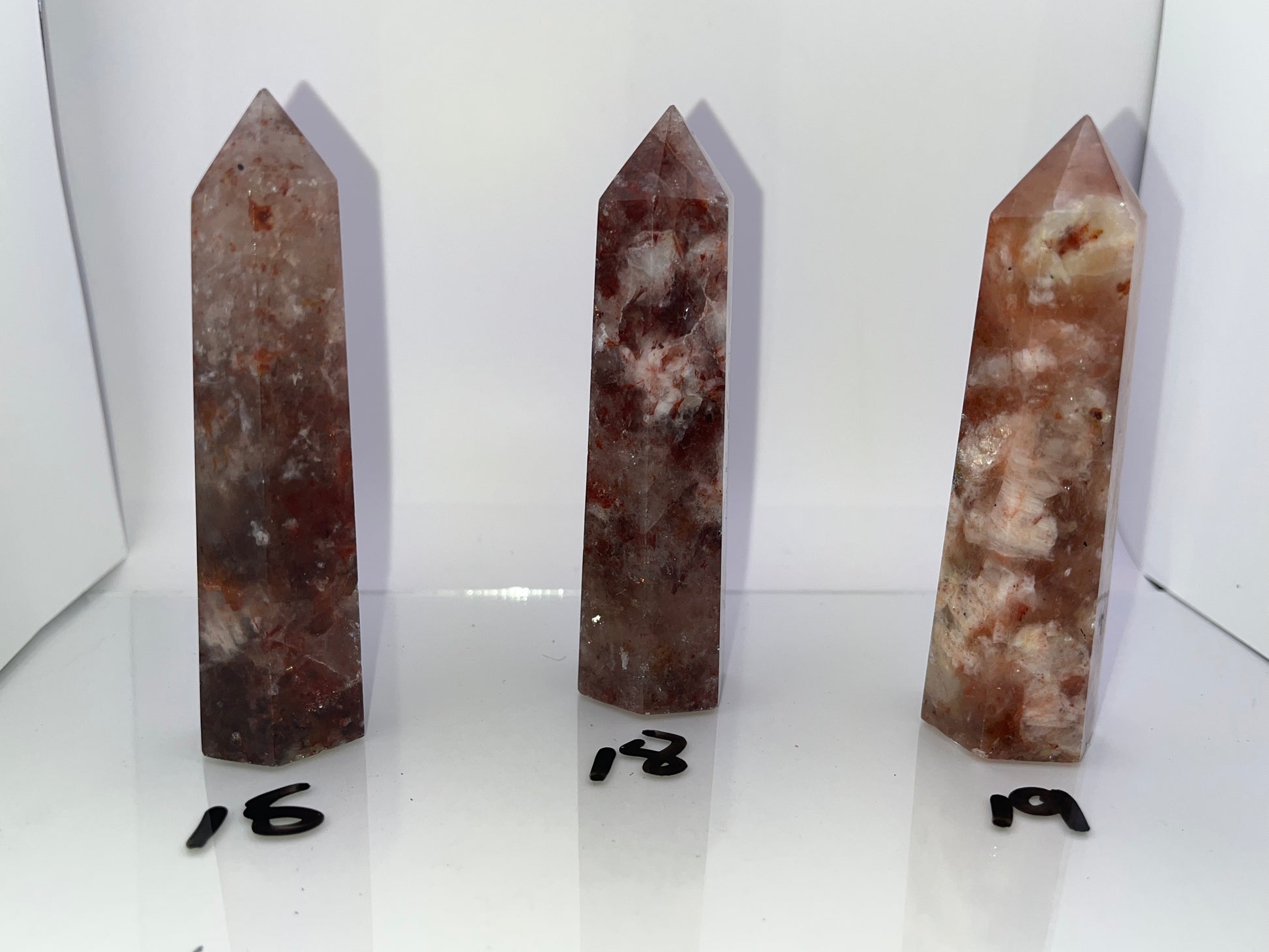 Fire Quartz and Flower Agate Towers, 3.5inch