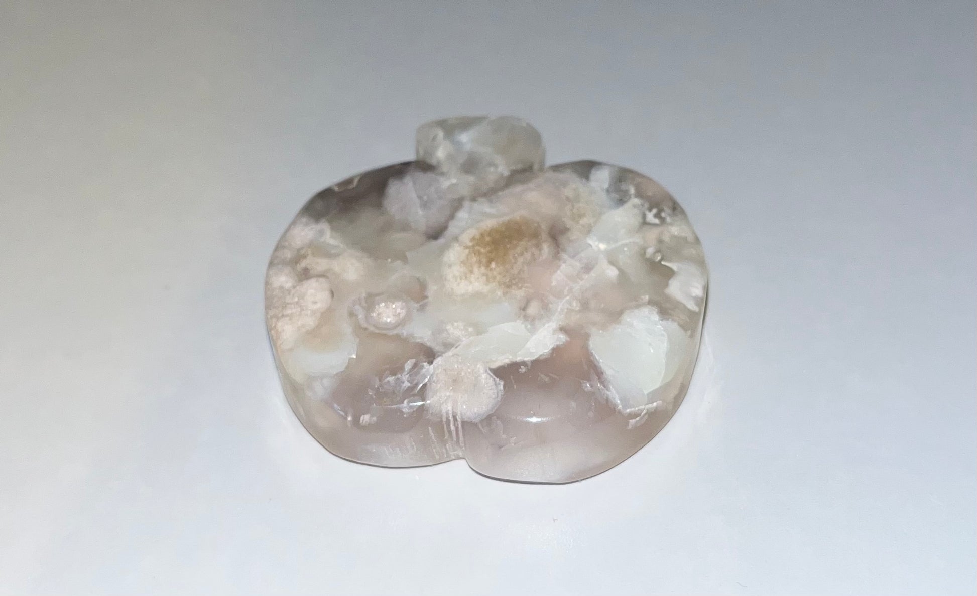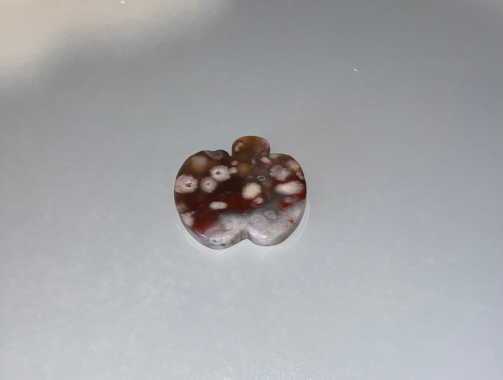Flower Agate Apple Carving. Beautiful detailed piece. Approximately 2 inches.