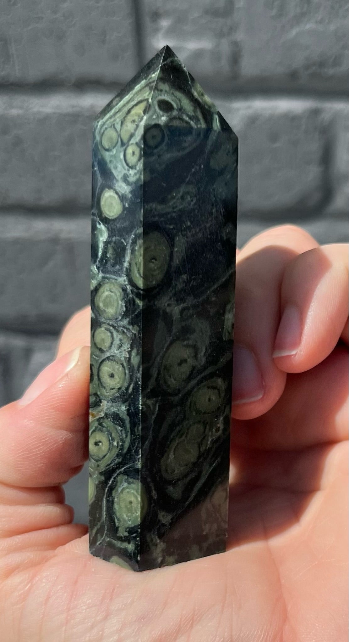 Kambaba Jasper Healing properties: A very grounding stone due to its deep connection with Mother Earth. Helps one remain in the present moment and remain calm under stress. Recommended that one meditates with this stone in nature to experience its full healing effects.