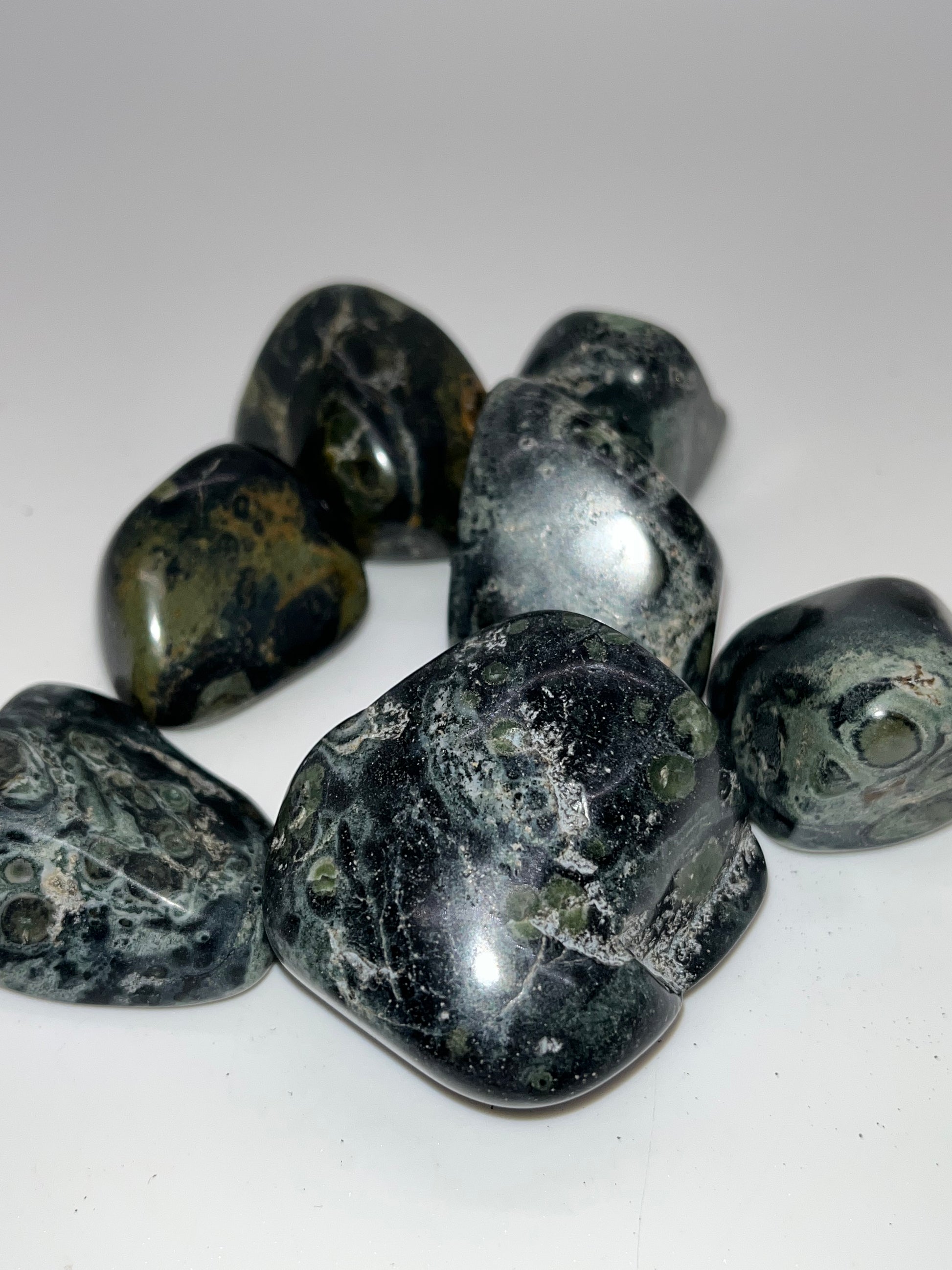 Kambaba Jasper Crystal Healing properties: A very grounding stone due to its deep connection with Mother Earth. Helps one remain in the present moment and remain calm under stress. Recommended that one meditates with this stone in nature to experience its full healing effects.