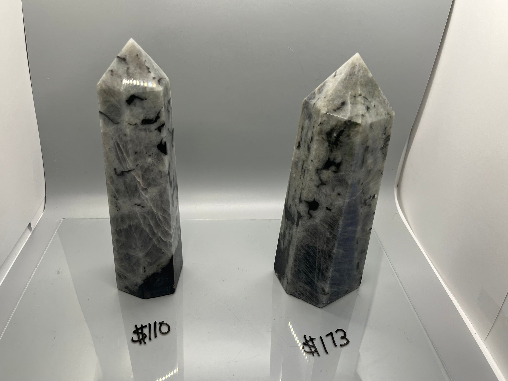 These towers have incredible blue flash! I always love labradorite. It has somewhat of a grounding and protective nature, even though it activates the higher chakras. As a libra, I tend to like that balance.