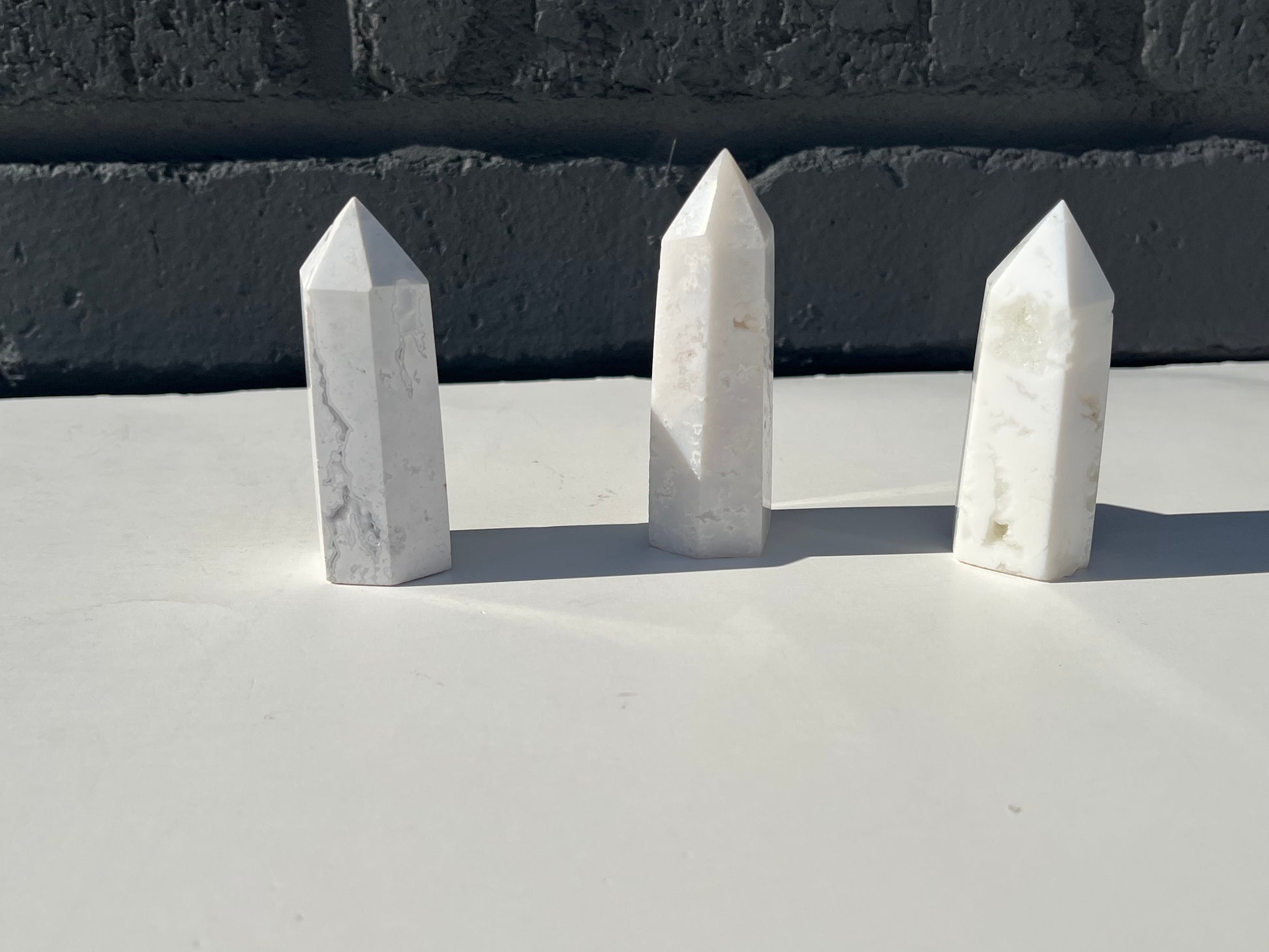 Magnesite Healing properties: Brings a deep sense of inner peace and relaxation. A beneficial support stone for those who wish to perform inner work, contact spirit guides, and access higher states of consciousness. Placing Magnesite on the third eye chakra is said to enhance creative visualization.