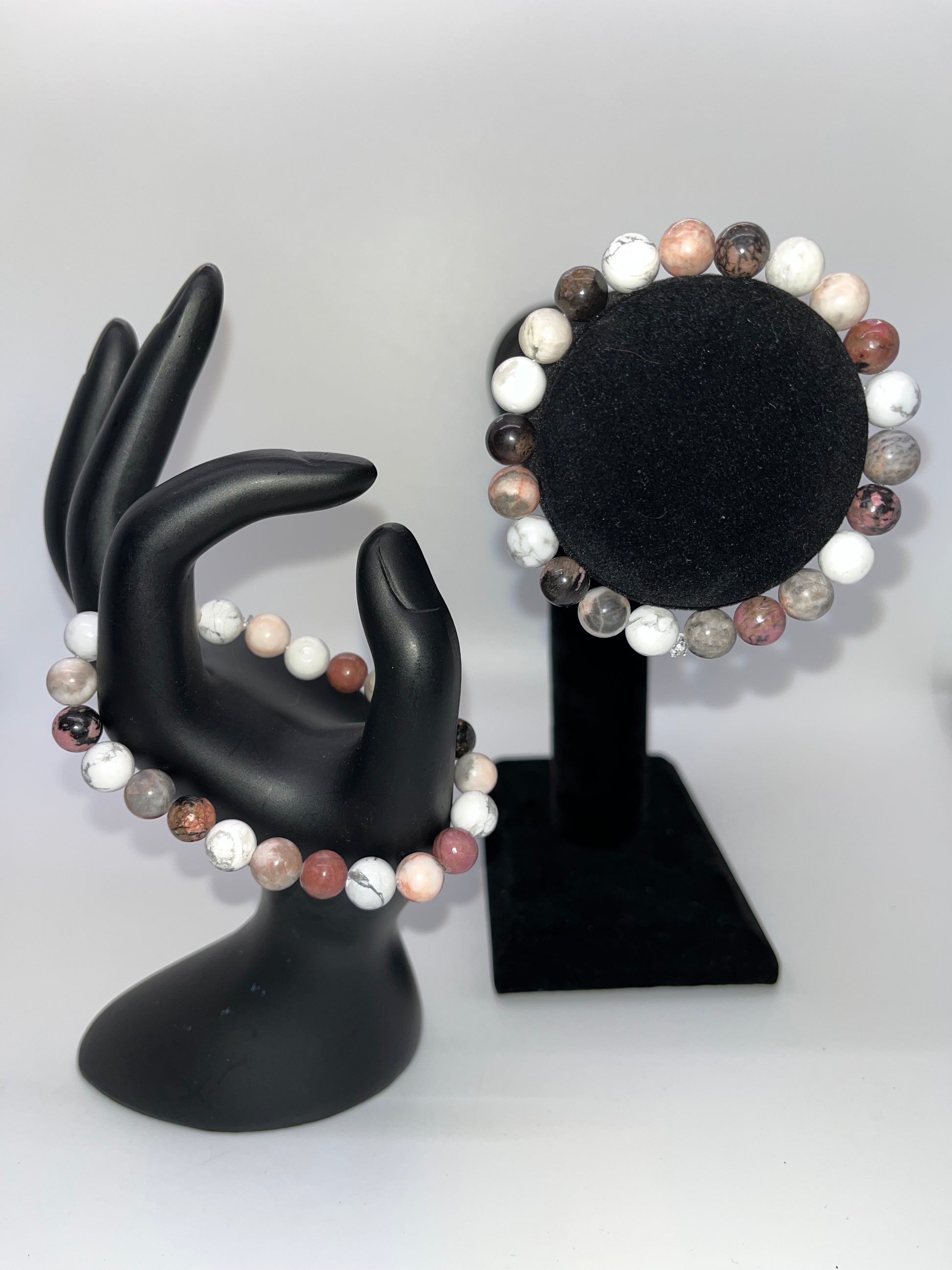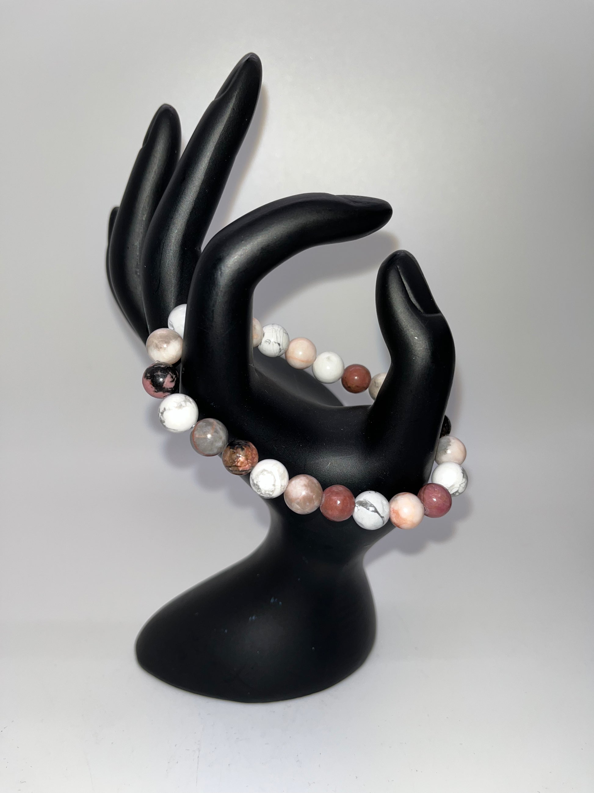White Howlite: Healing properties: An extremely calming and soothing stone that allows one to enter a deep meditative state. Brings greater gentleness, empathy, and compassion when dealing with others and relieves feelings of frustration and impatience.