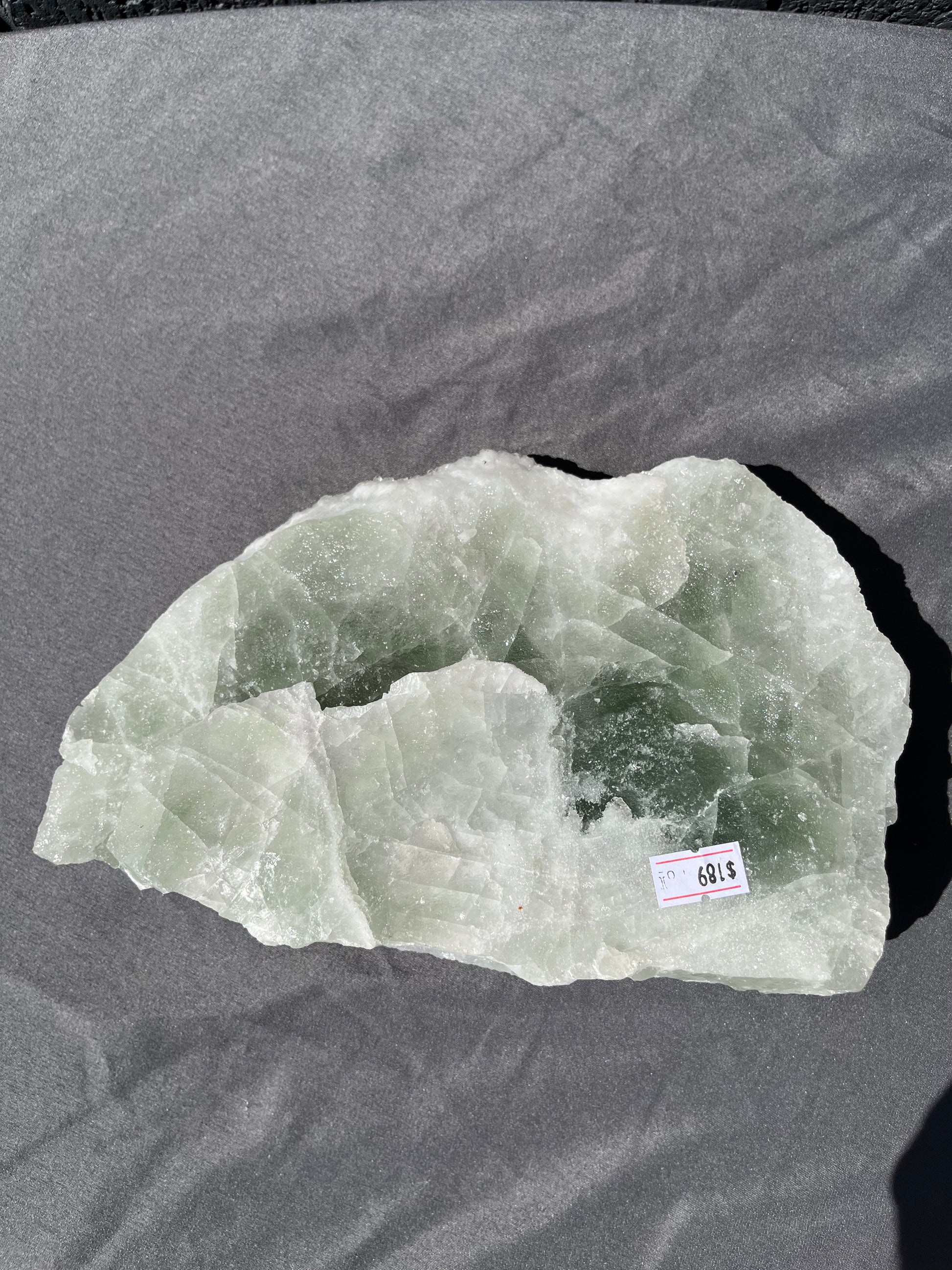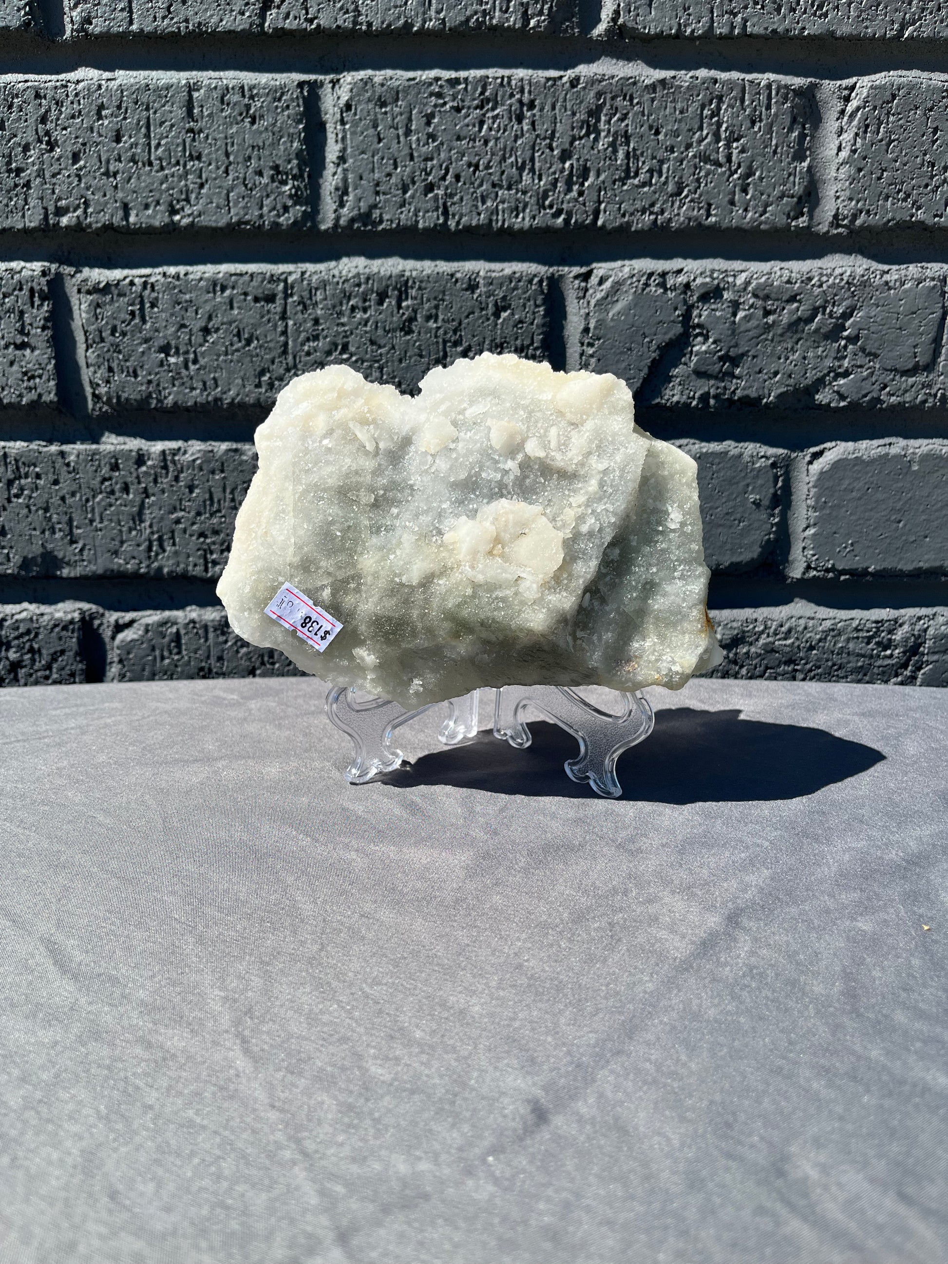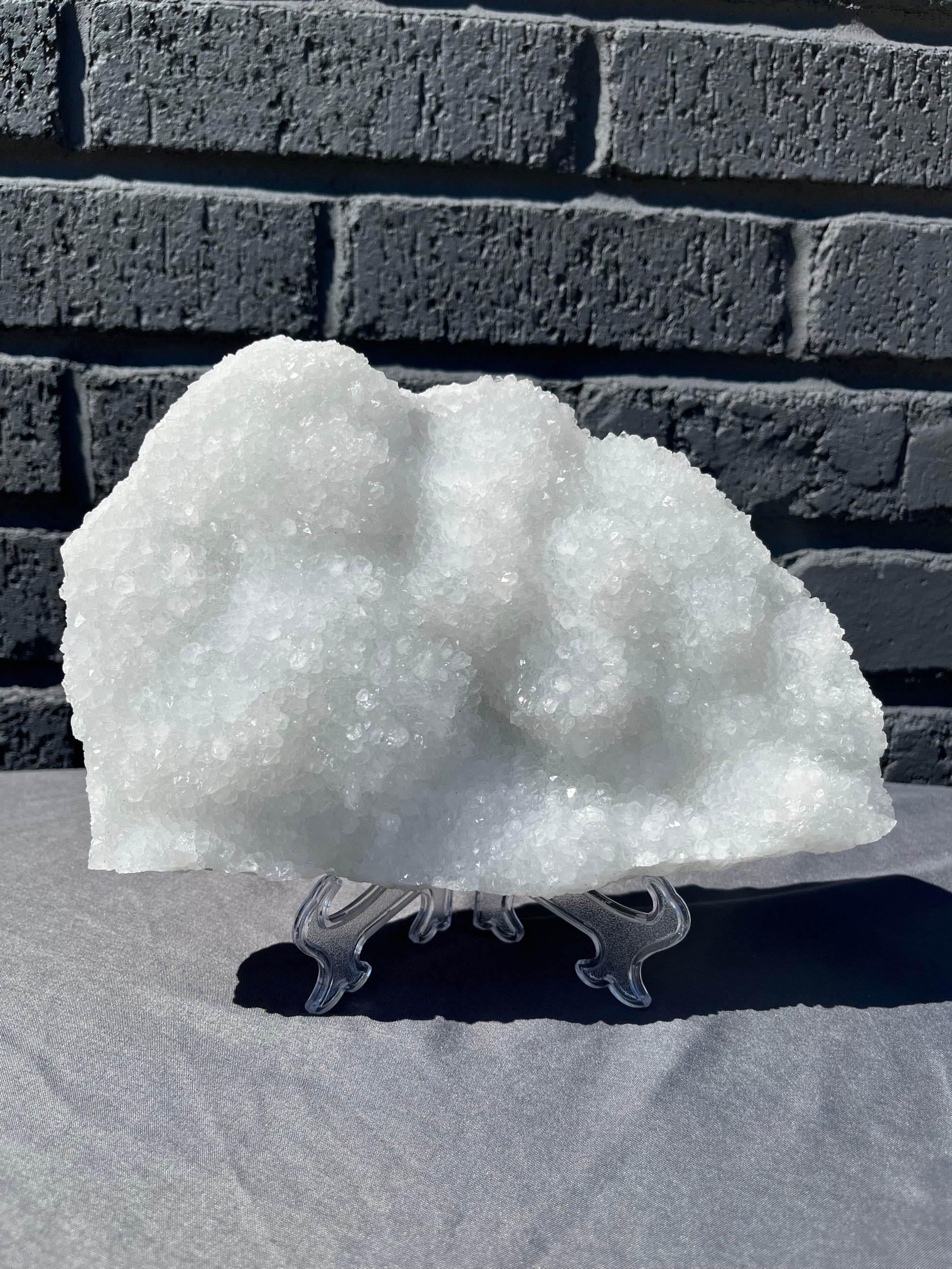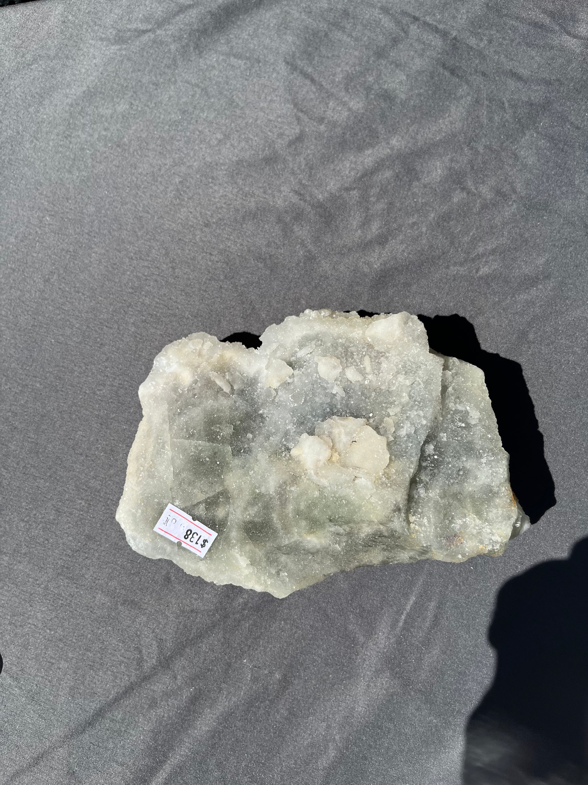 This piece really shines! It is also a 2 for one! Not only does it have the stunning druzy quartz on one side, it also has a thick slab of bright green fluorite on the other side. The quartz helps to magnify the effects of the green fluorite!