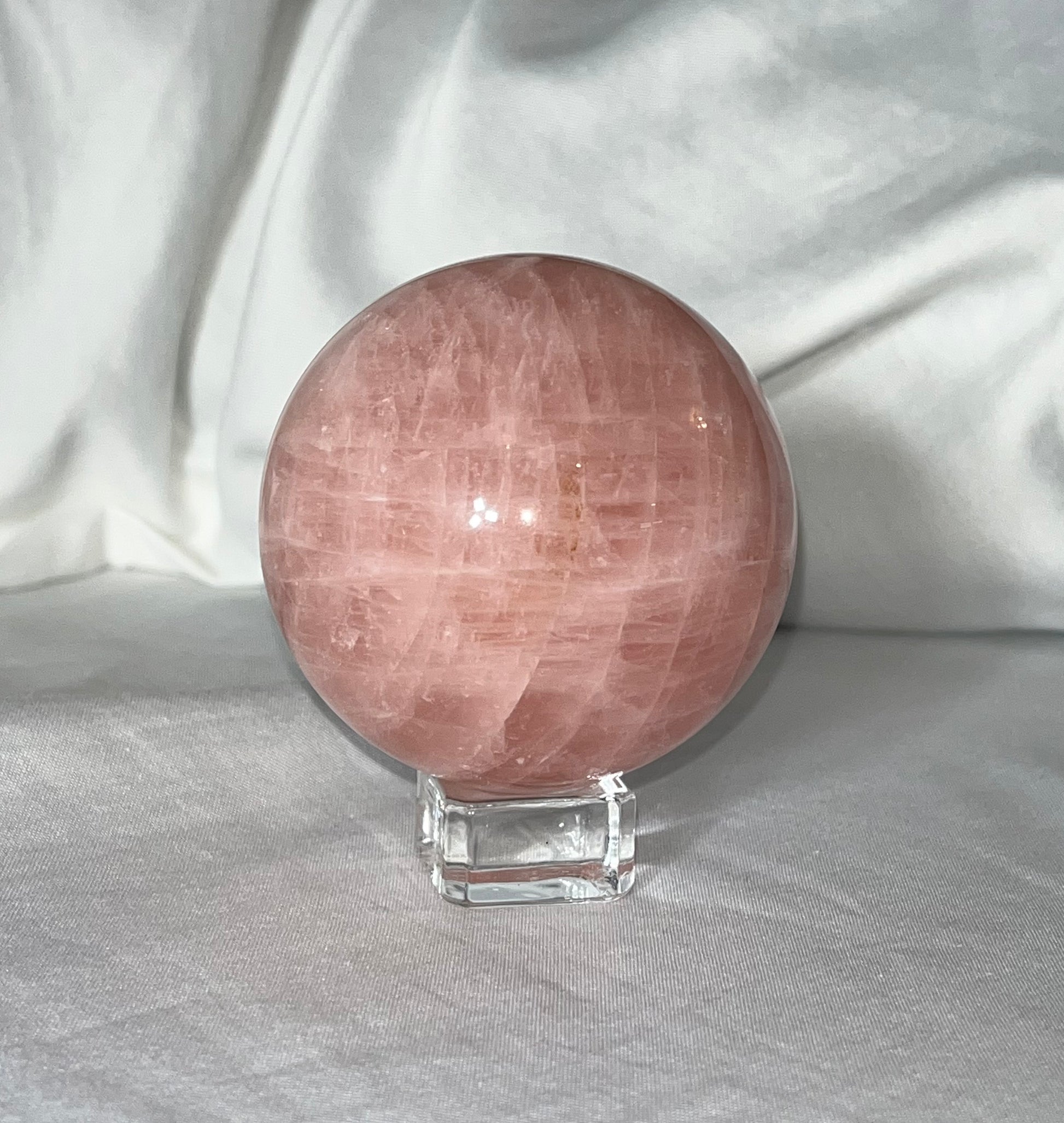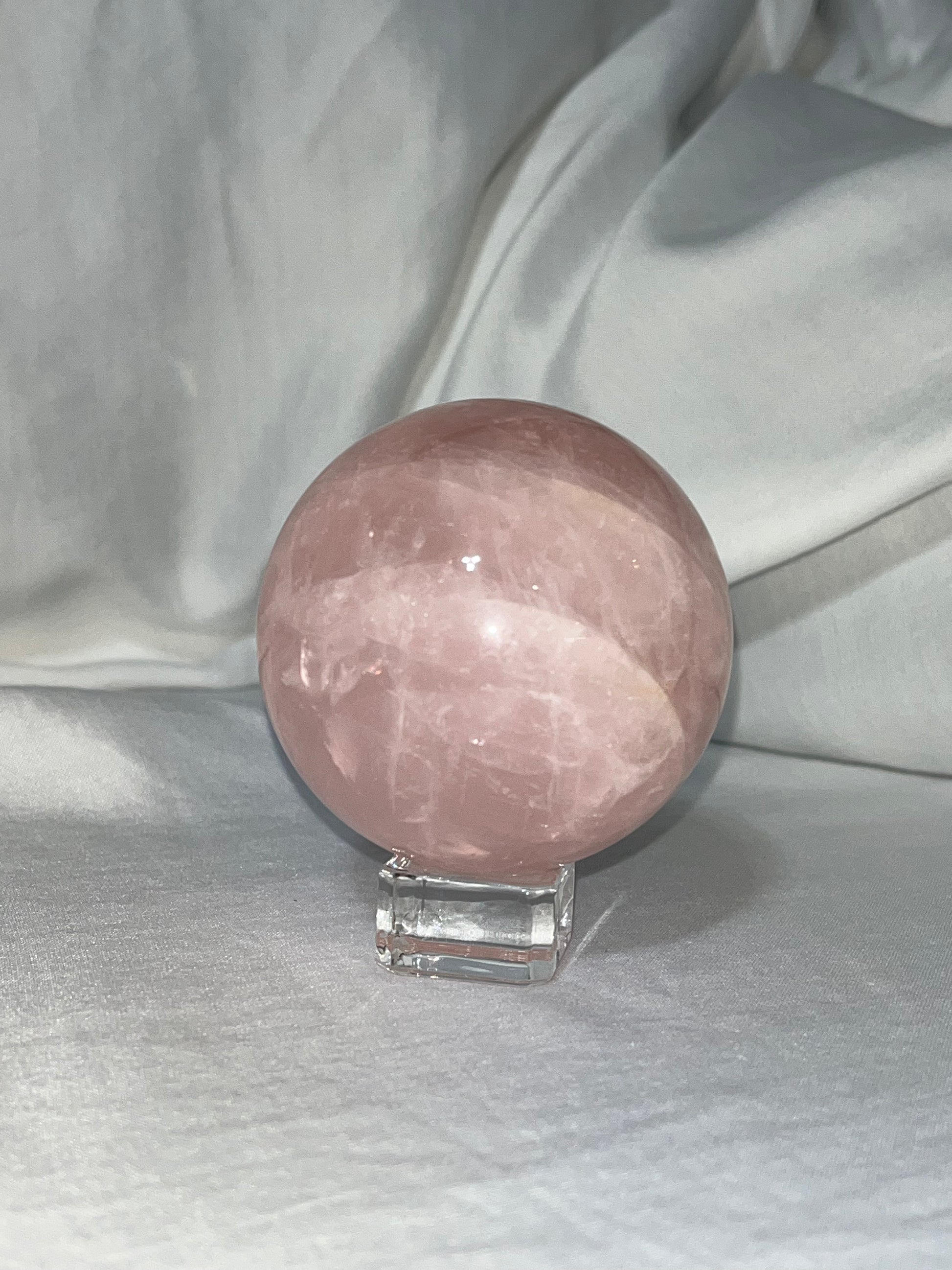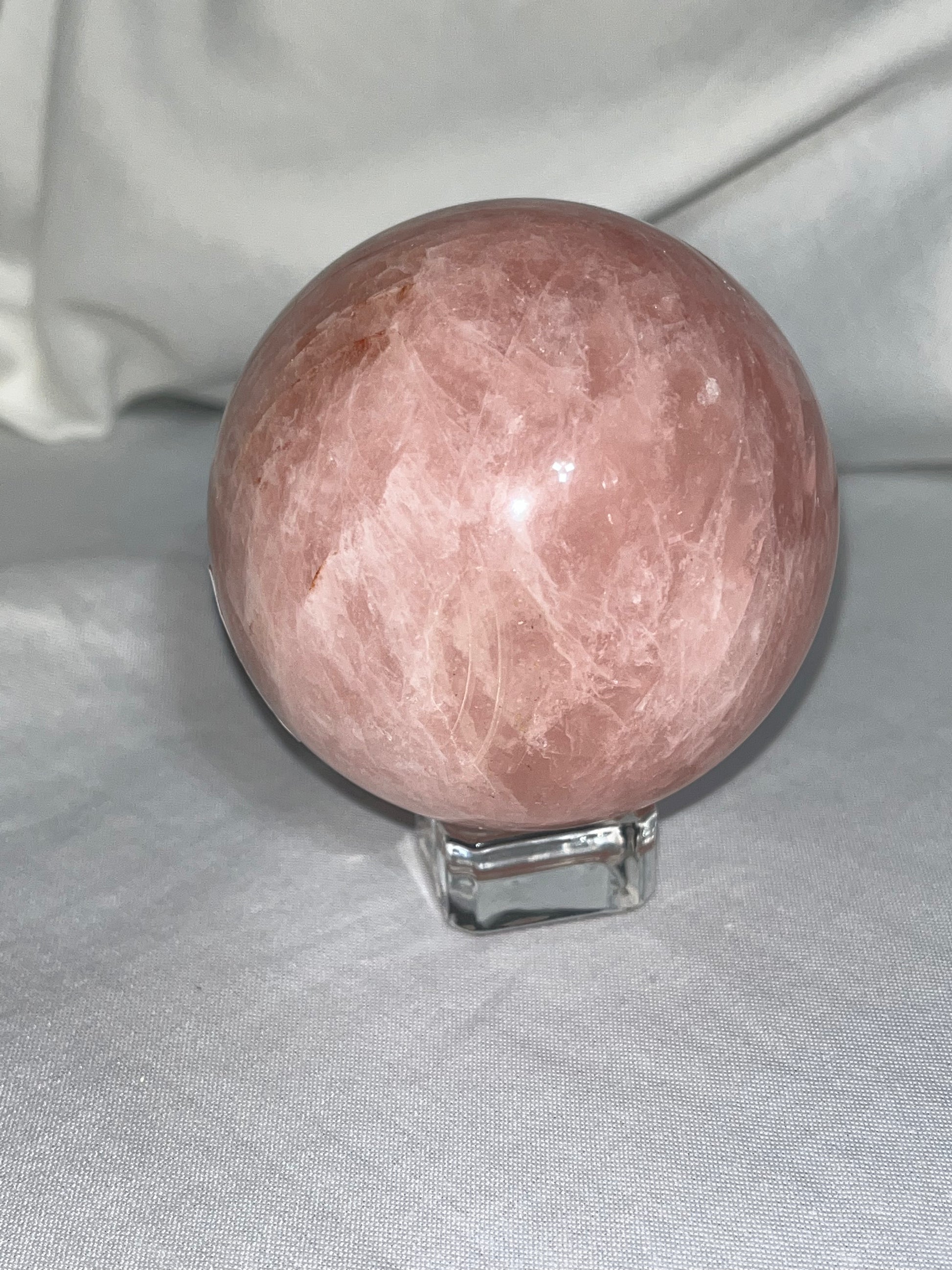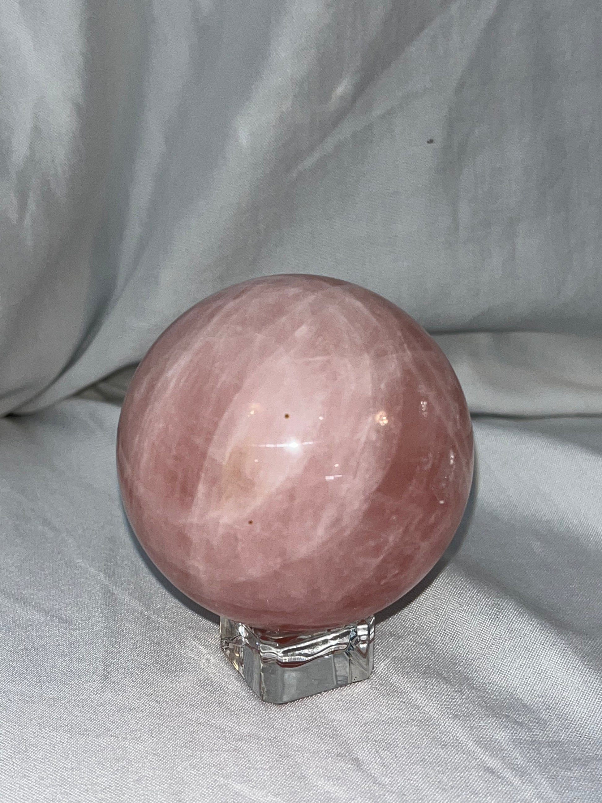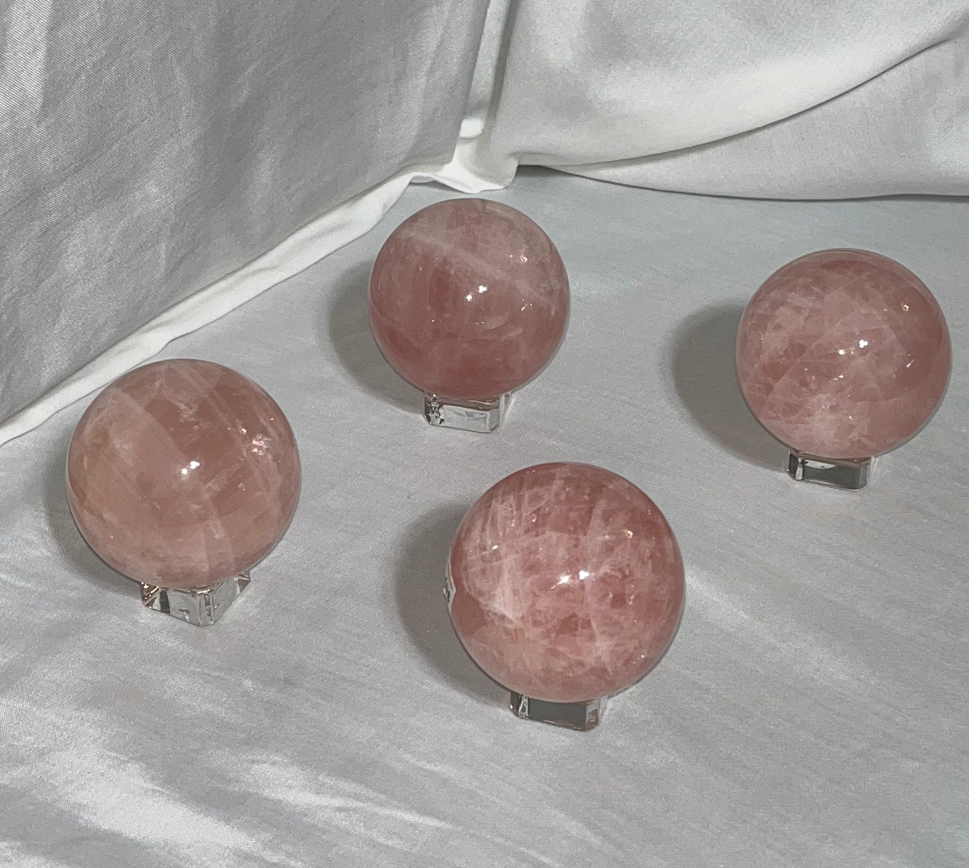 Enhance your home aesthetic with these large rose quartz spheres! Each sphere is carefully crafted with the highest-quality rose quartz, perfect for creating a beautiful home decor. These spheres have an amazing color saturation and patterning to them! You can even catch a great rainbow flash on them as well!