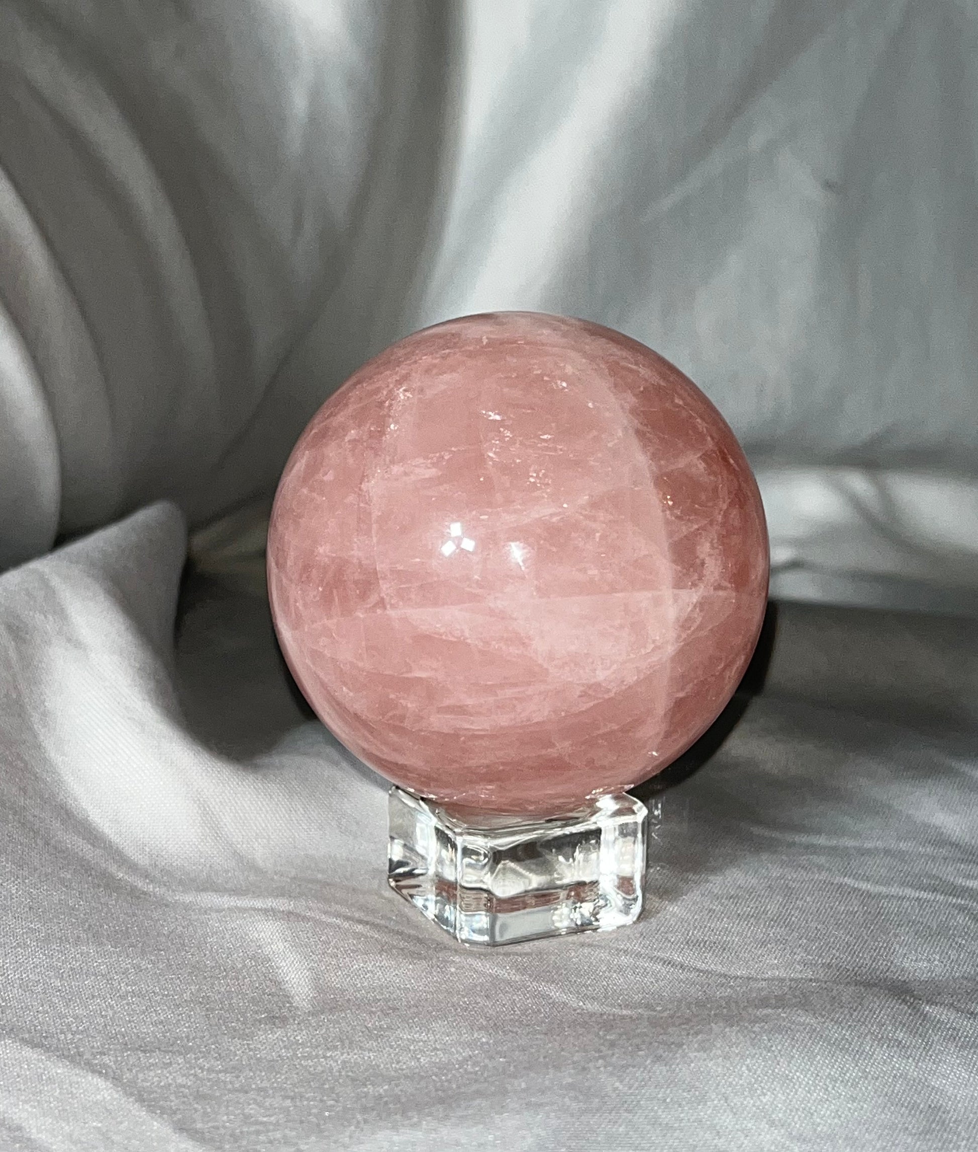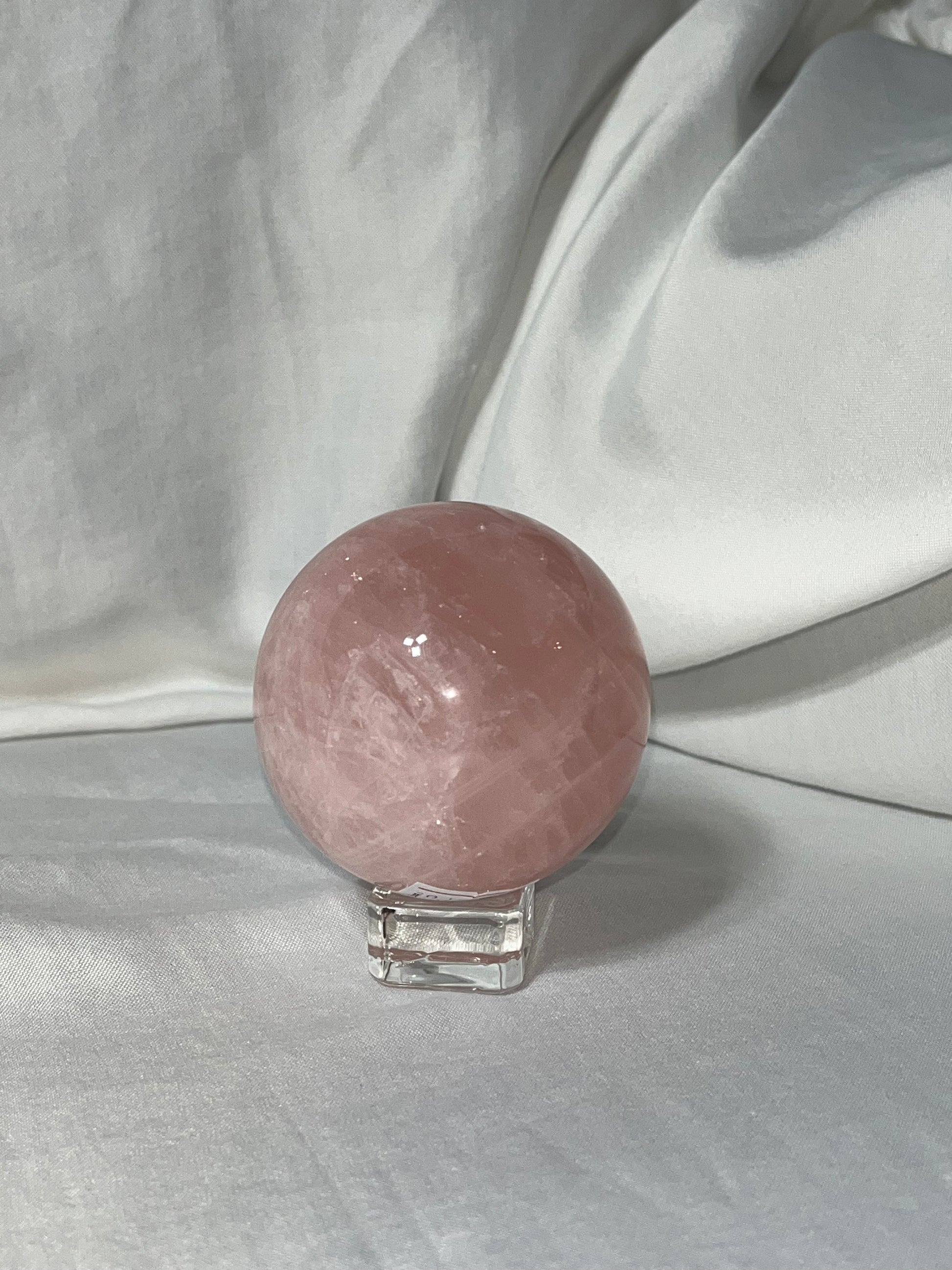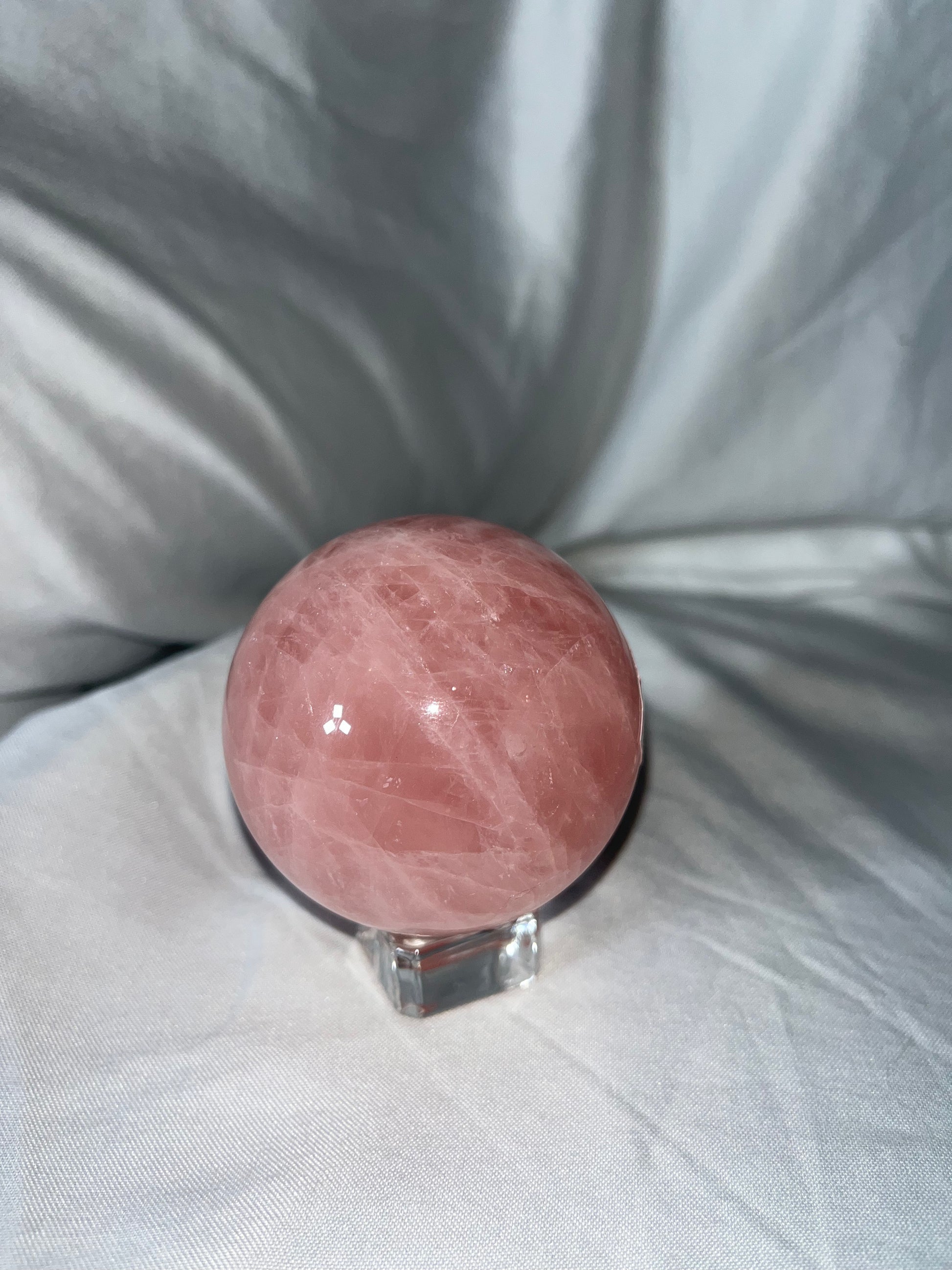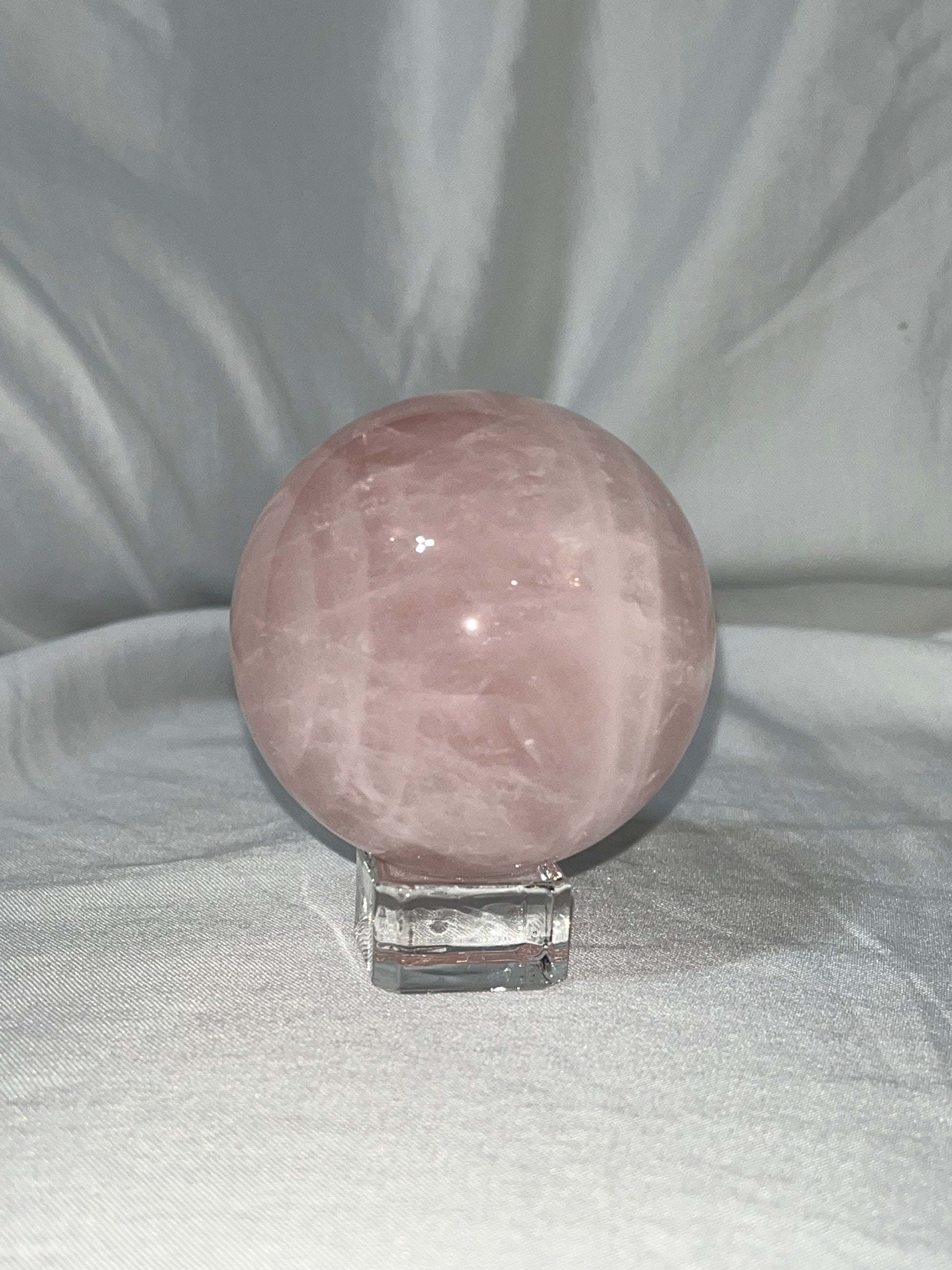 Enhance your home aesthetic with these large rose quartz spheres! Each sphere is carefully crafted with the highest-quality rose quartz, perfect for creating a beautiful home decor. These spheres have an amazing color saturation and patterning to them! You can even catch a great rainbow flash on them as well!