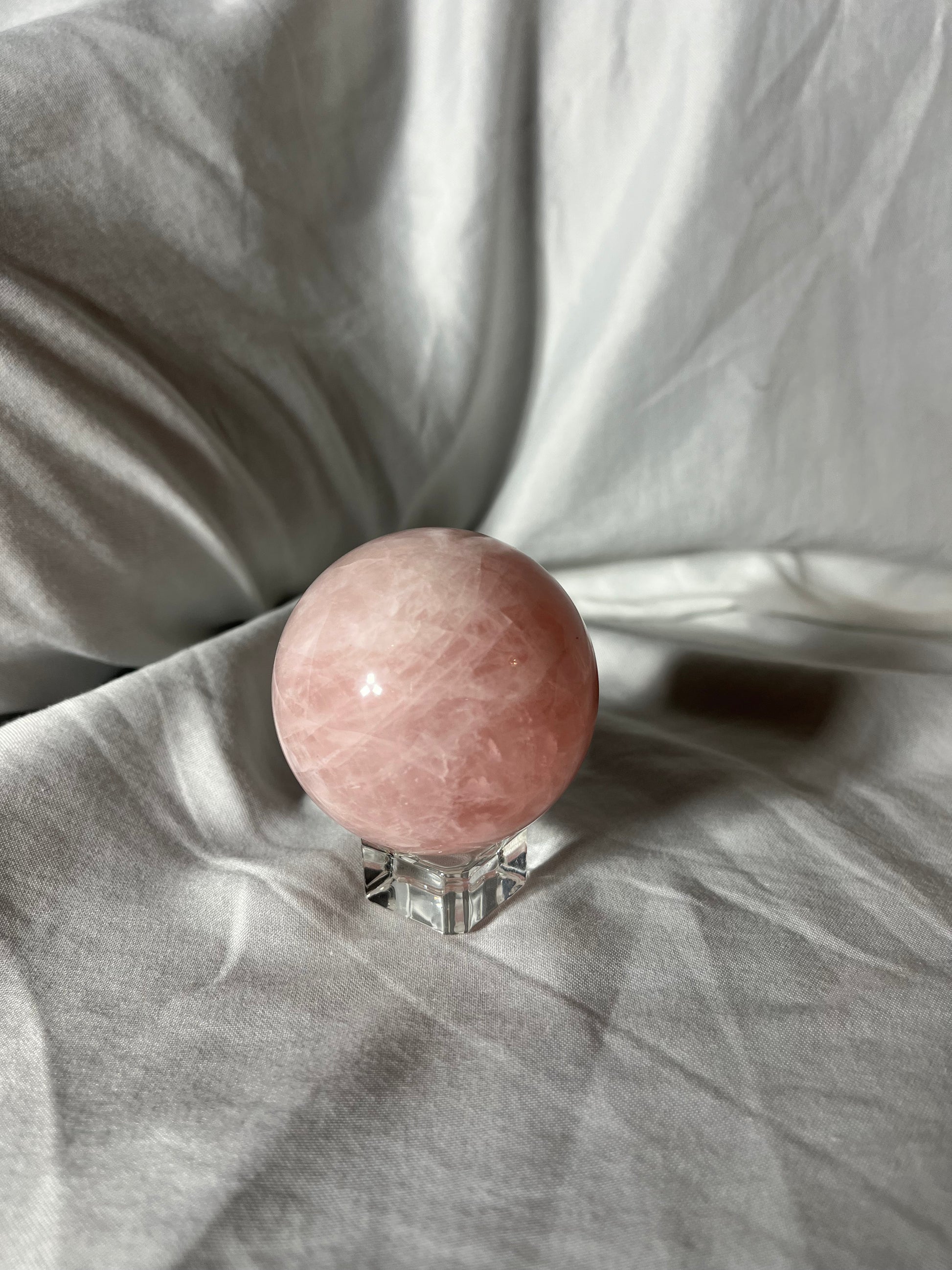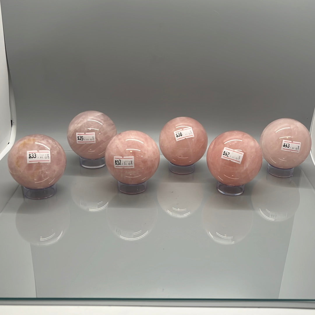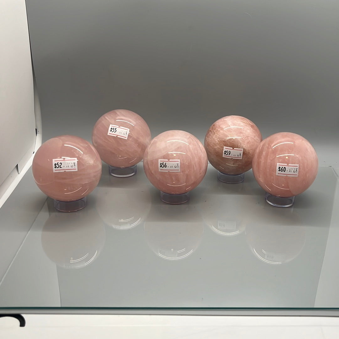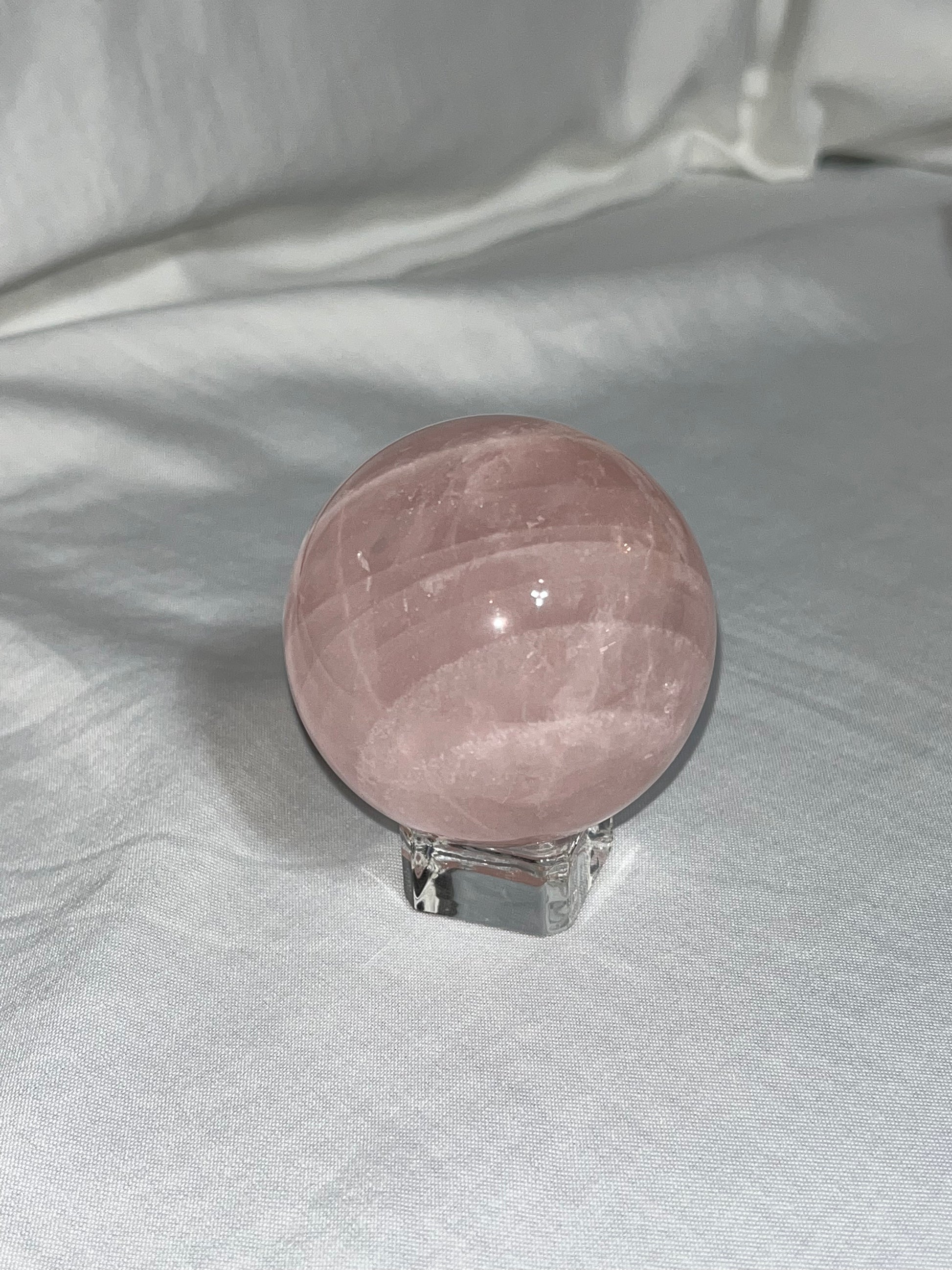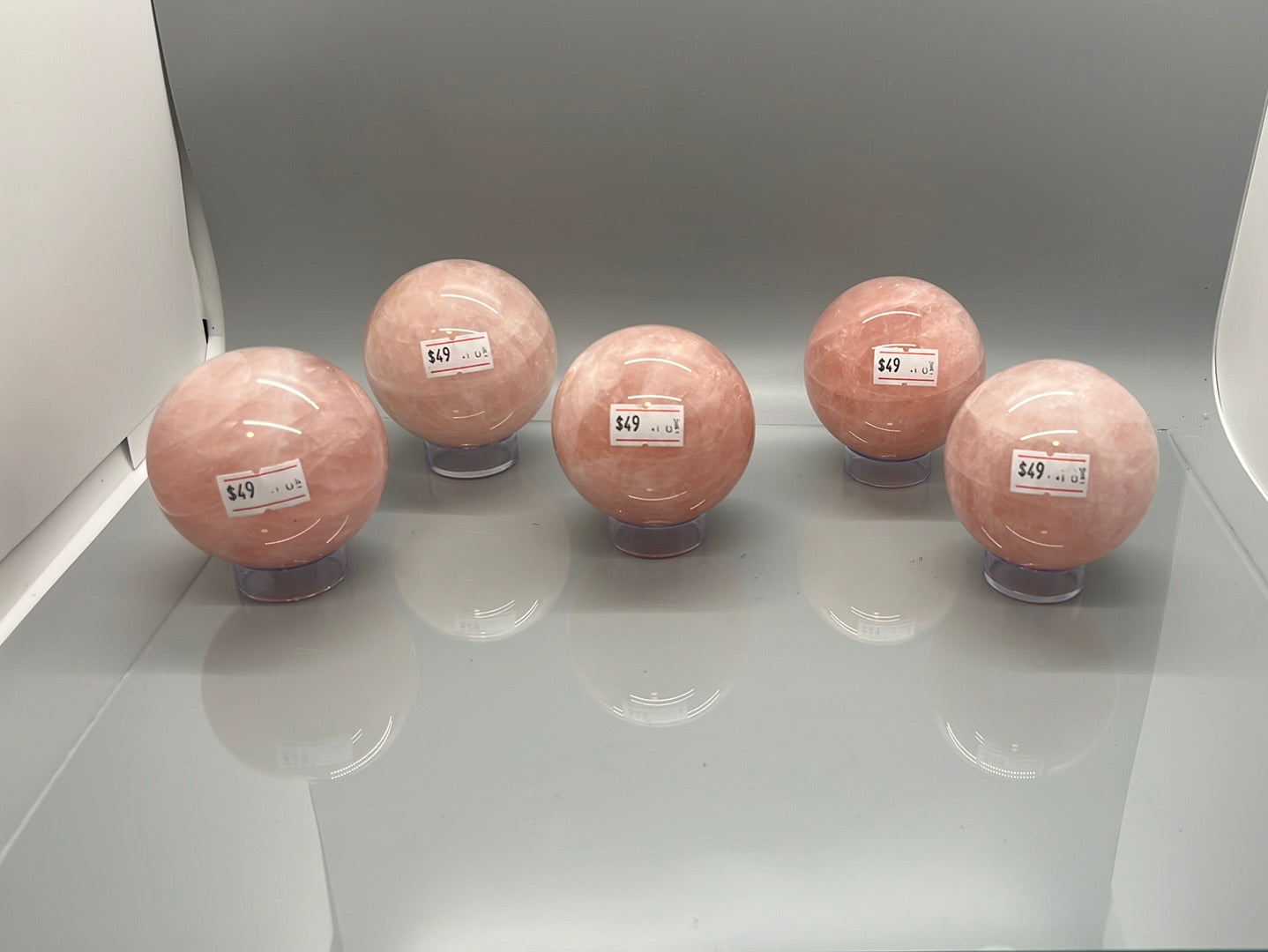 Enhance your home aesthetic with these large rose quartz spheres! Each sphere is carefully crafted with the highest-quality rose quartz, perfect for creating a beautiful home decor. These spheres have an amazing color saturation and patterning to them! You can even catch a great rainbow flash on them as well!