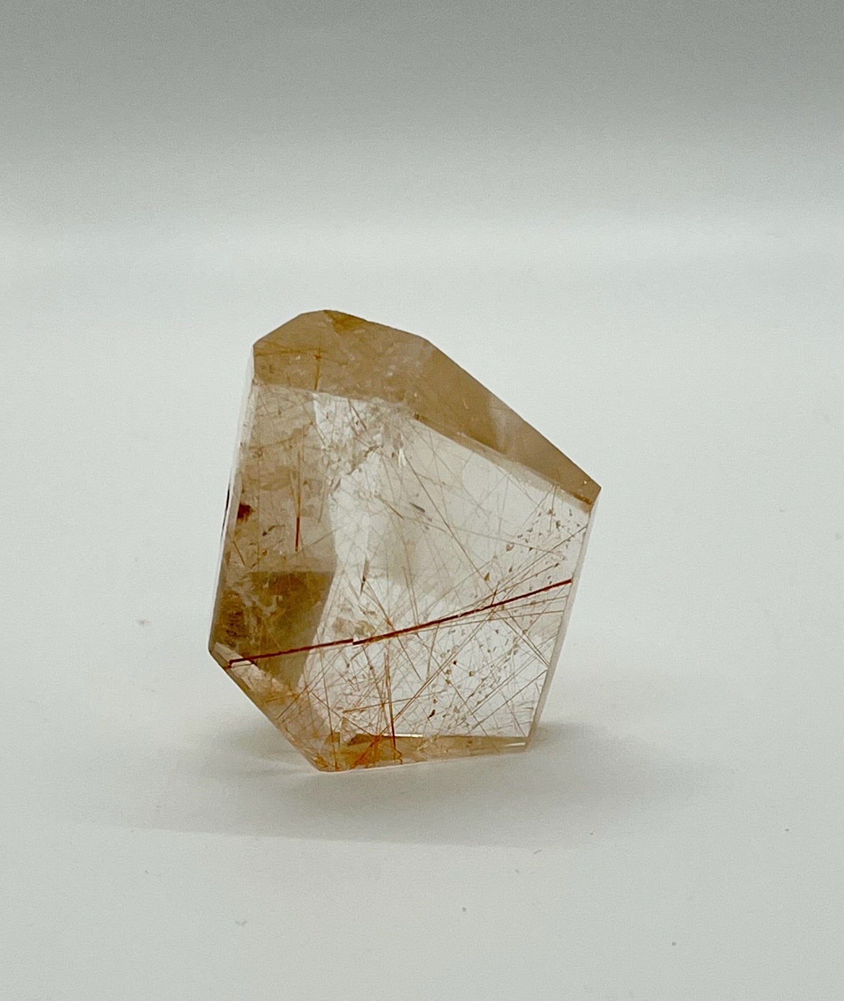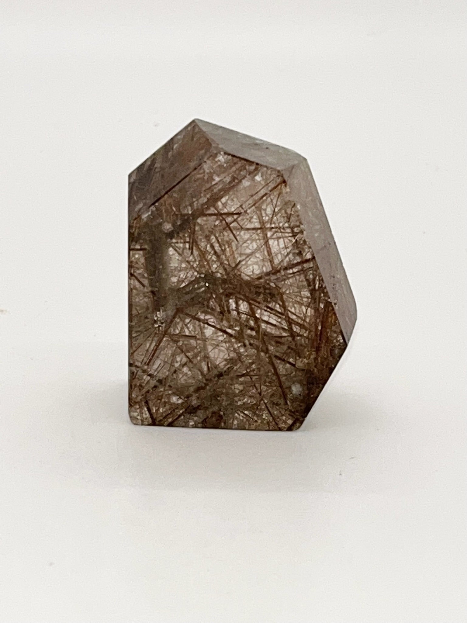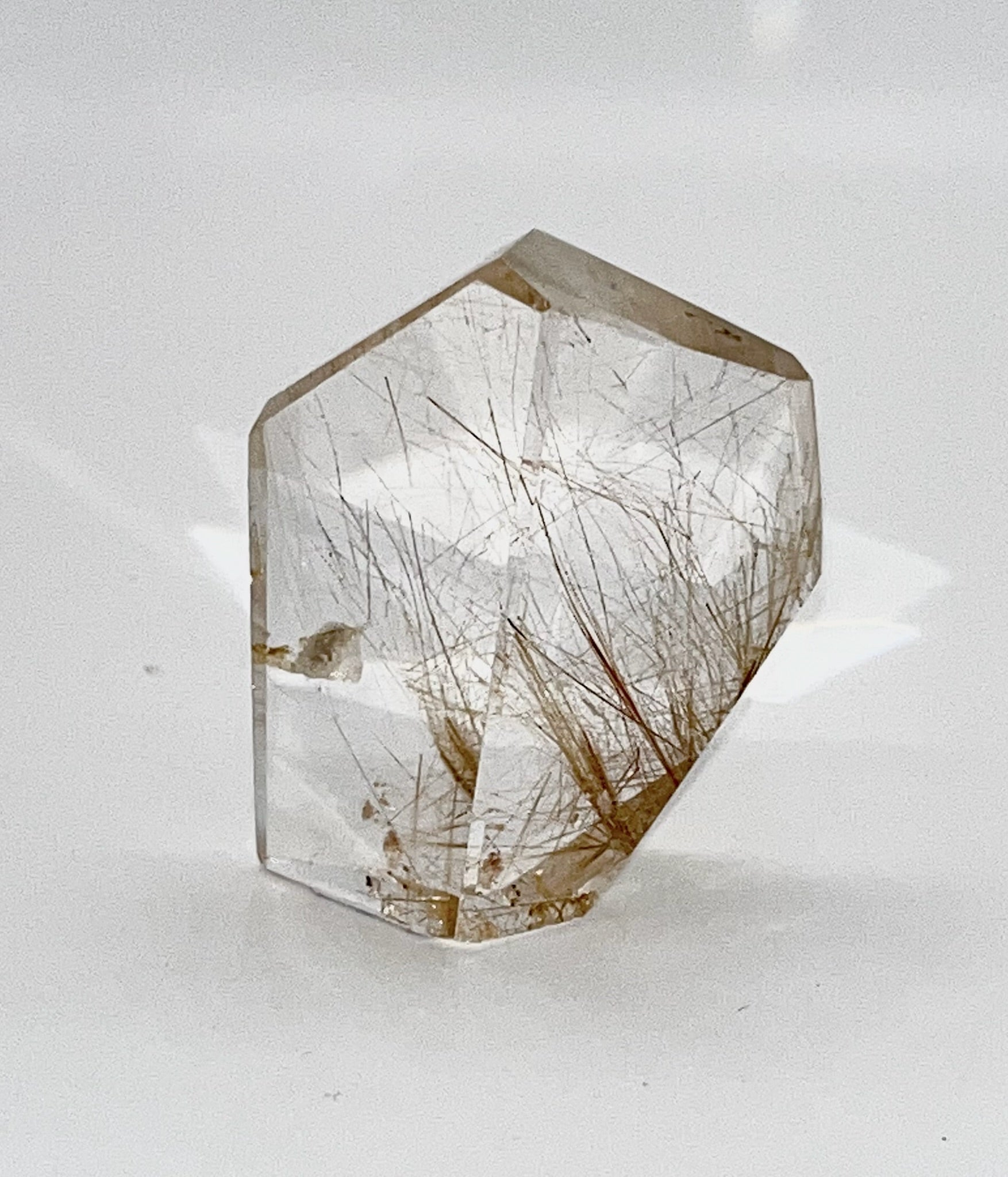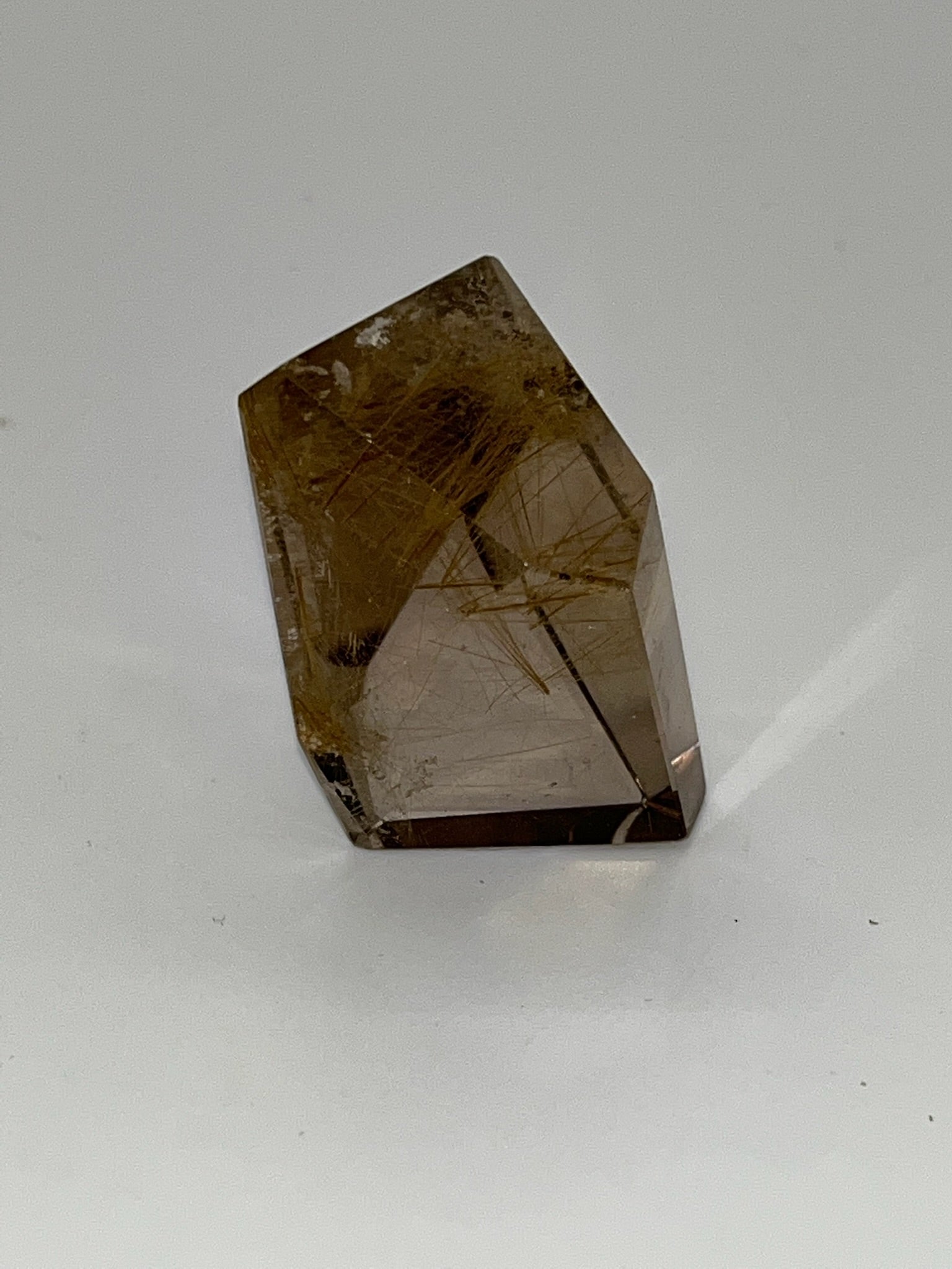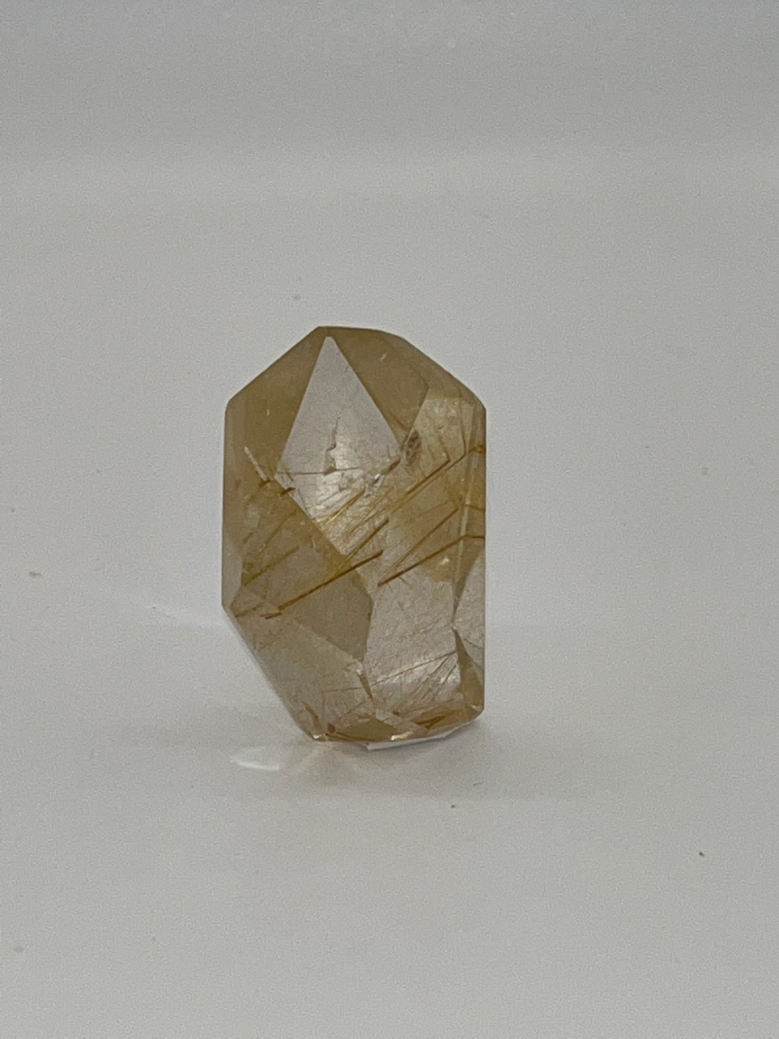 Rutilated Quartz: A stone with a high vibration that attunes one to their Divine Purpose. Like Clear Quartz, it is very programmable and can be used to magnify the energy of any intention. It accelerates the manifestation process and enhances intuition, psychic opening, and consciousness expansion.