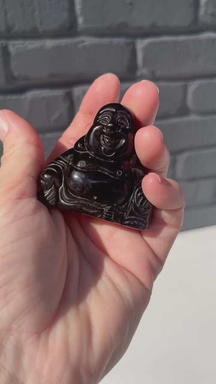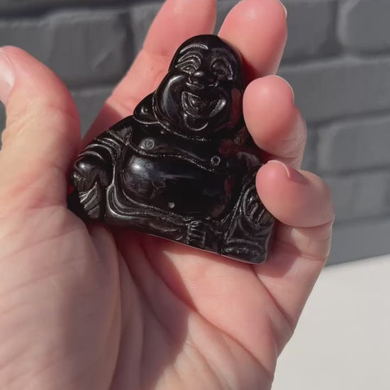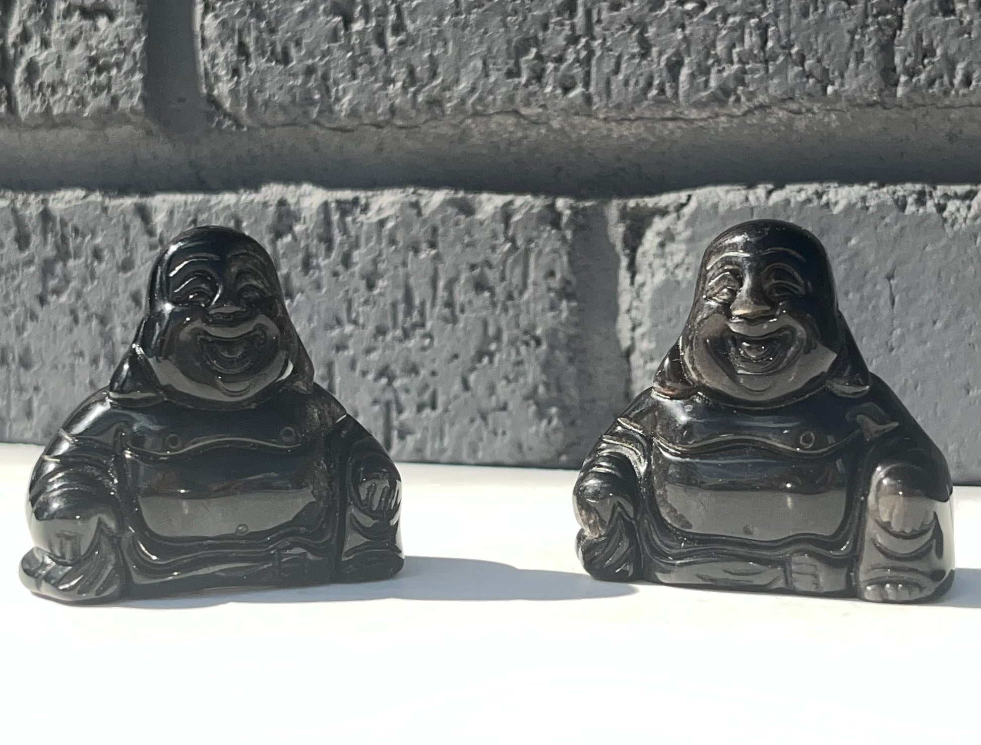 Silver Obsidian Buddha Carvings