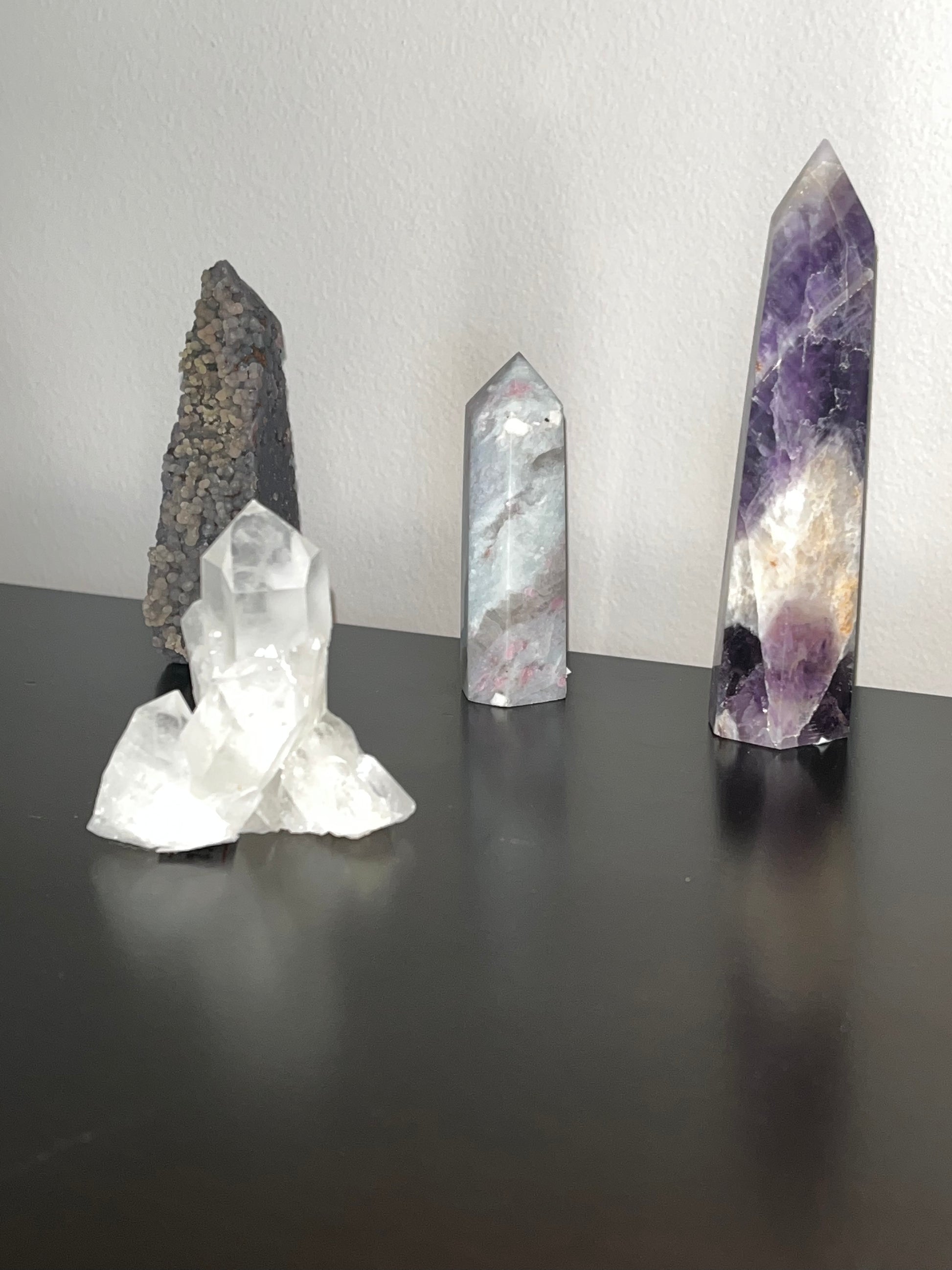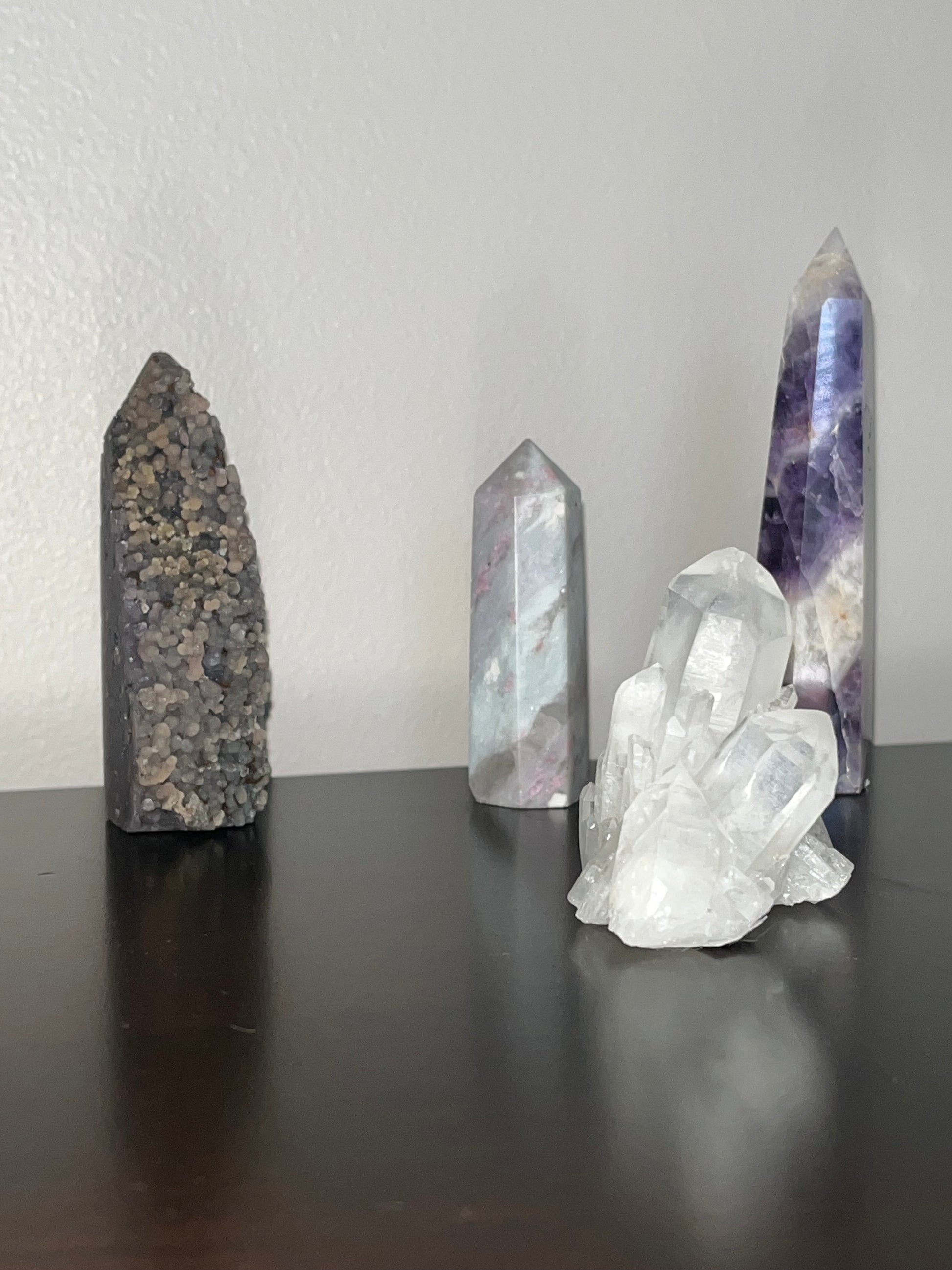 This bundle can help you to get better sleep, reduce nightmares, and can help you to better interpret your dreams! I love how the Amethyst, Grape agate, and Pink tourmaline offer a protective, restful energy. This amazing clear quartz cluster helps to enhance all of these energies. I would recommend keeping this set around the head of your bed for best results! - I never sleep without amethyst at the head of the bed, it is amazing for getting the most restful sleep!