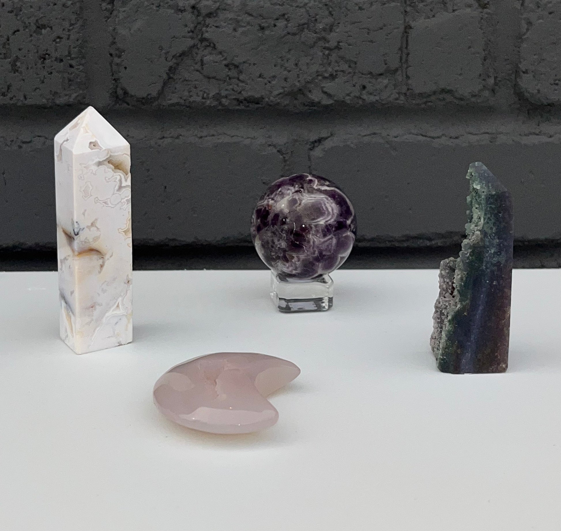This bundle can help you to get better sleep, reduce nightmares, and can help you to better interpret your dreams! I love how the Amethyst and Grape agate offer a protective, restful energy. The Magnesite gives a calm and peaceful energy, and can help with spiritual development. And the druzy agate moon anchors this set with a sturdy, uplifting energy. I would recommend keeping this set around the head of your bed for best results! - I never sleep without amethyst at the head of the bed, it is amazing for getting the most restful sleep!