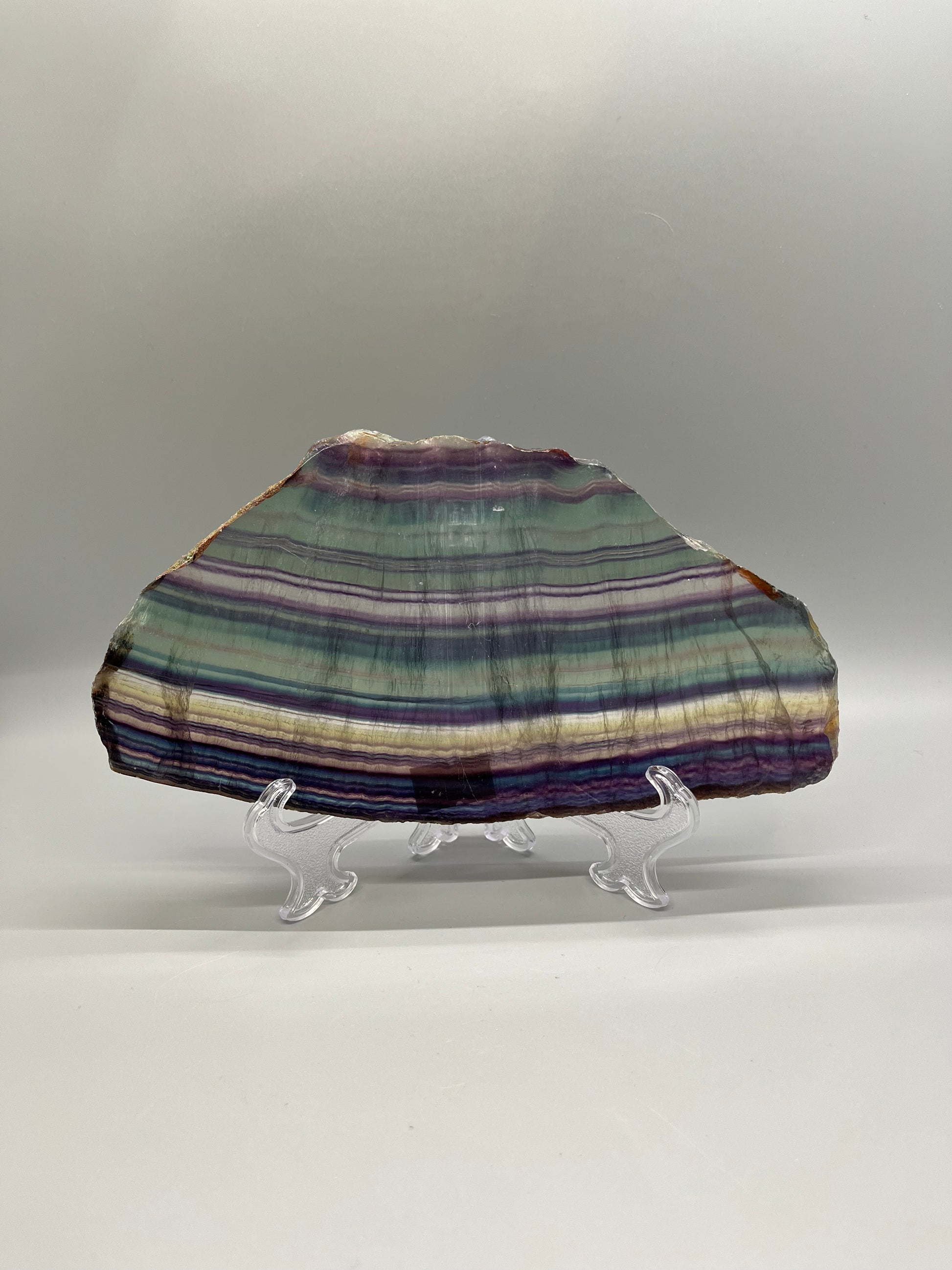 Rainbow Fluorite Healing properties: Ideal stone for overcoming issues of procrastination and disorganization, giving one the motivation to complete tasks. Enhances mental clarity and helps one ground their thoughts. Improves self-discipline and encourages one to incorporate structure into their life.